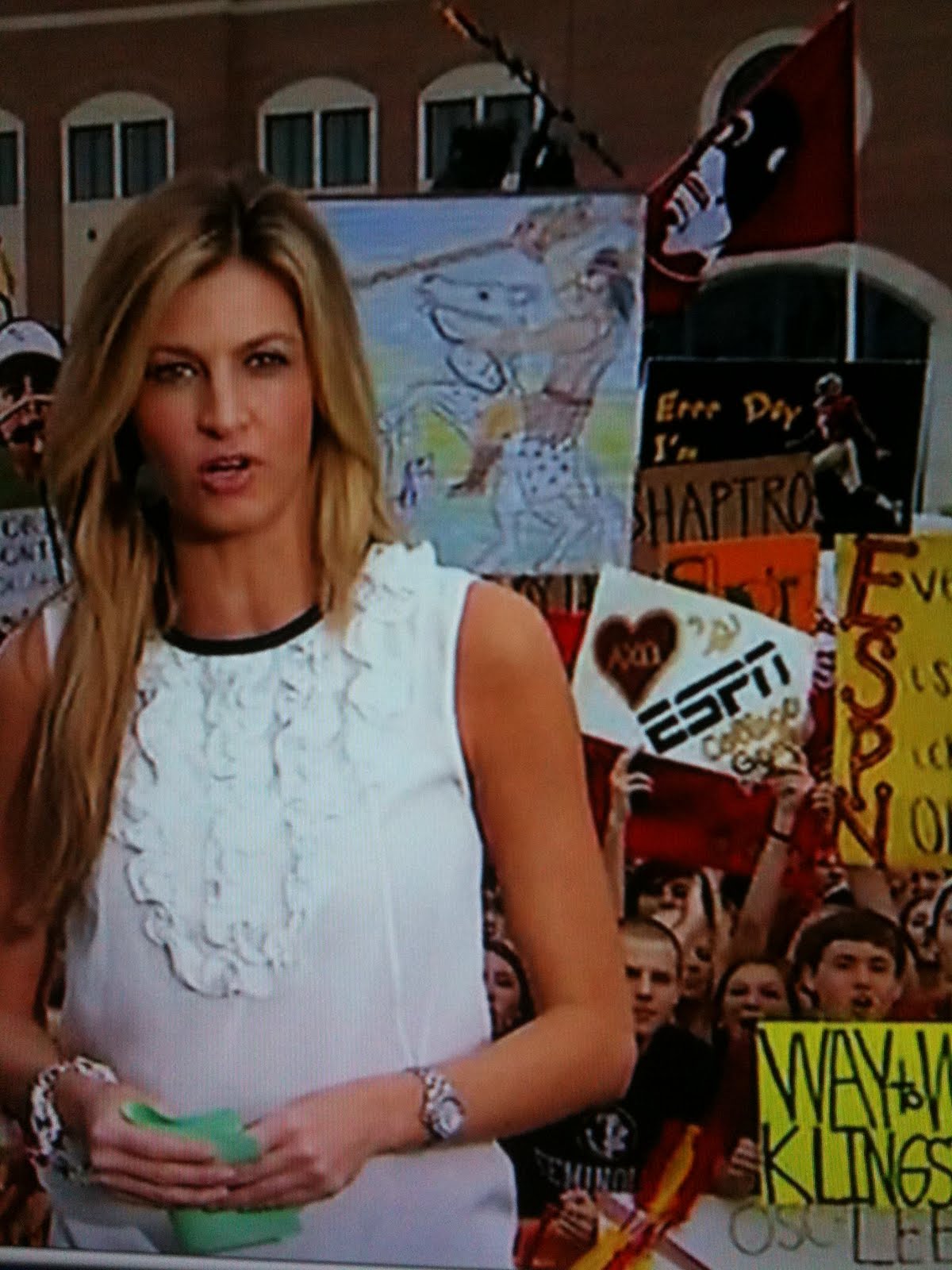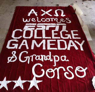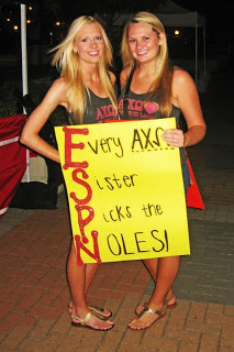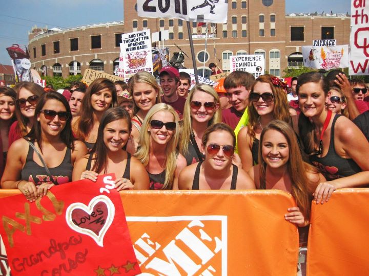 The Ladies of the Beta Eta chapter of Alpha Chi Omega welcomed ESPN College Game Day to the Florida State University Campus for the FSU vs Oklahoma University Game. There met at the chapter house at 6am, to make the trek to Langford Green. They donned shirts, buttons and signs sure to get them on TV, and showed support for current collegians “Grandpa Lee” with a sign on the chapter house, and quote on the back of their “Game Day shirts”