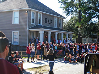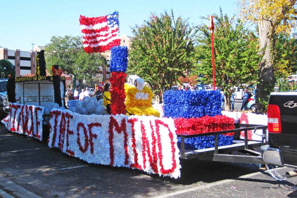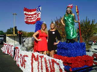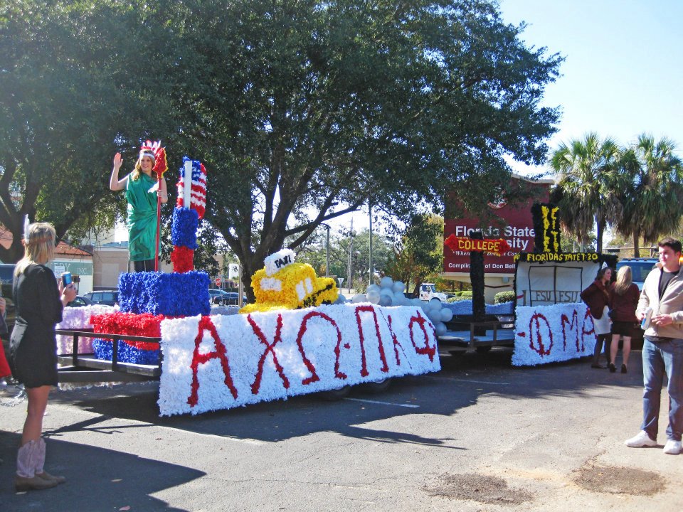 Members of Alpha Chi Omega & Pi Kappa Phi with the float