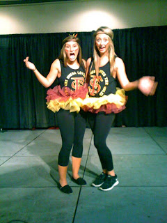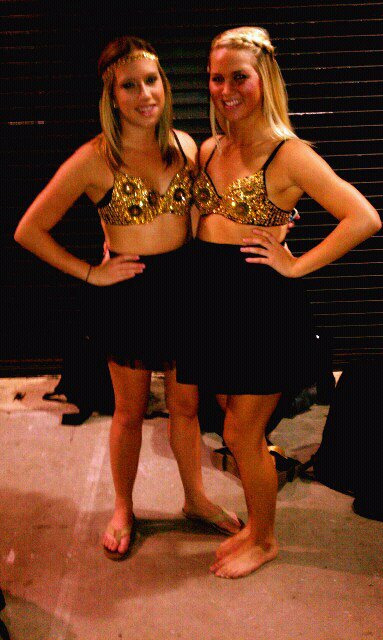 BFOC (Biggest Fan on Campus) winners Megan and Corine S, perform at Pow-Wow