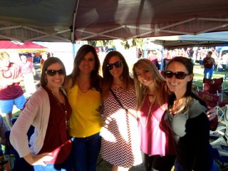 | Tailgating reunion at a home game (preparing for championship!) with besties BH alumnae: Carly (’06), Danielle, Christy (’06), Monique (’06) and Jenna (’07) |