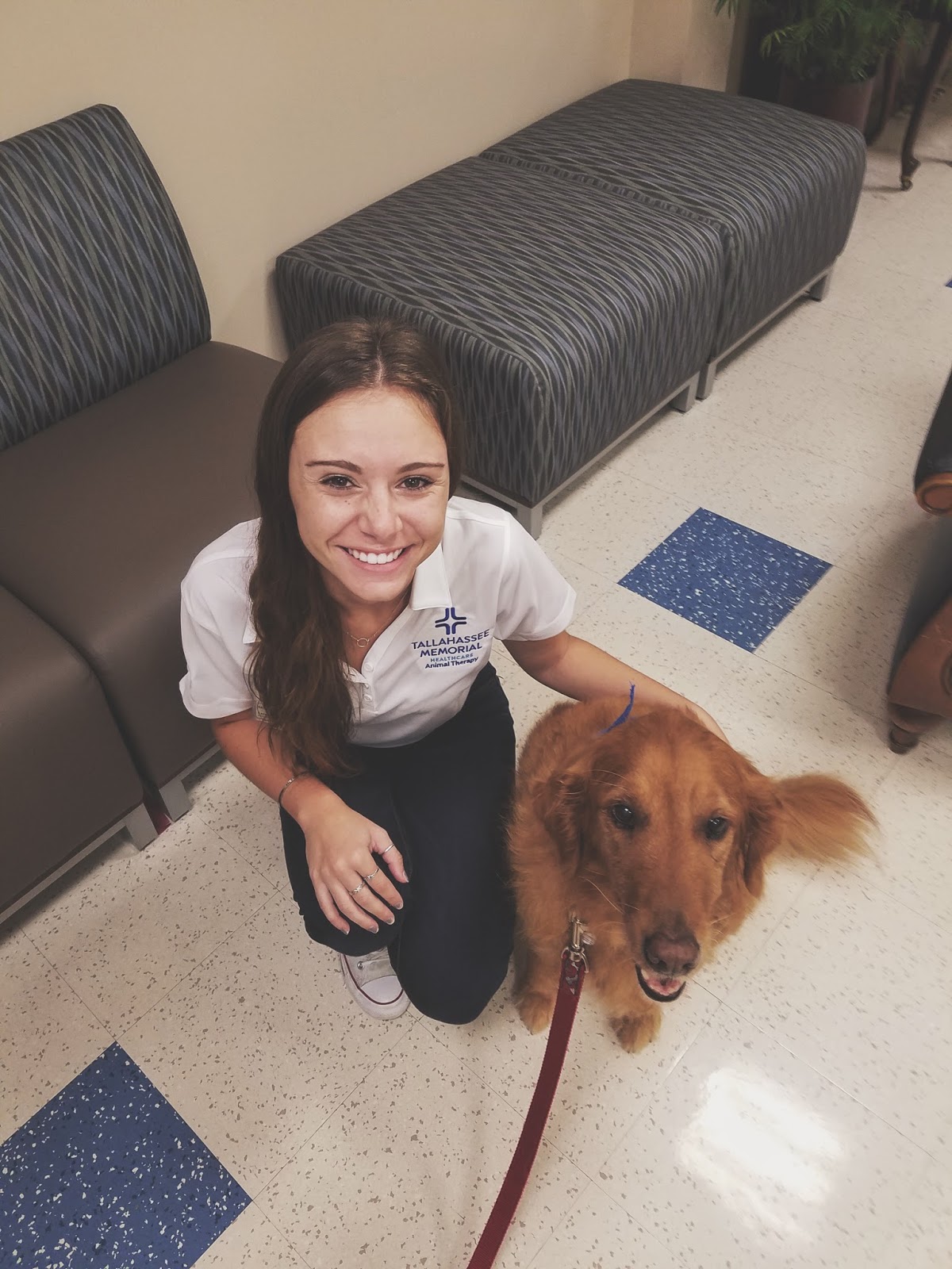 Caitlyn O’Connell is currently interning with Tallahassee Memorial Healthcare Animal Therapy!