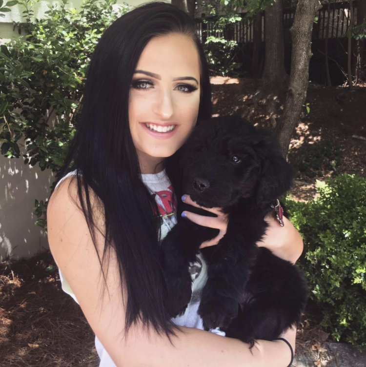| Ashley with her goldendoodle puppy Millie |