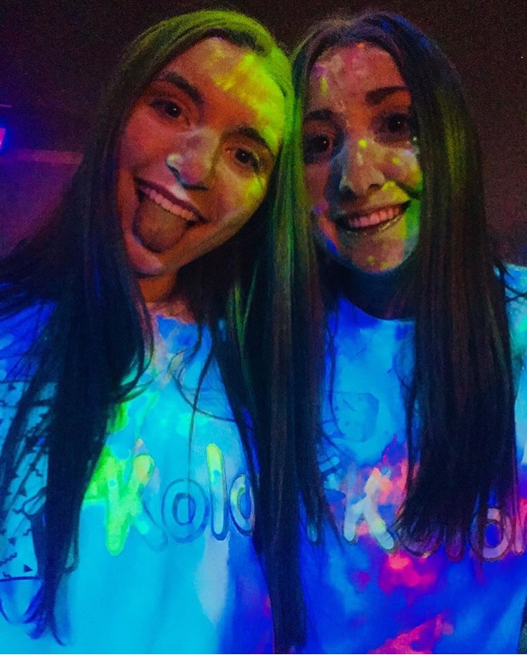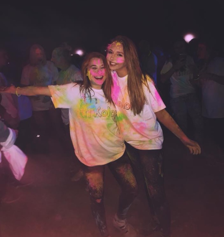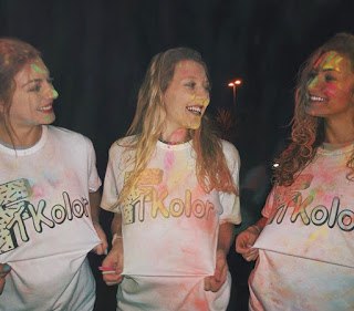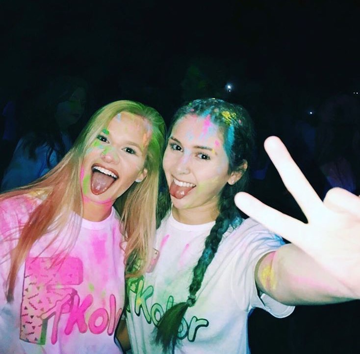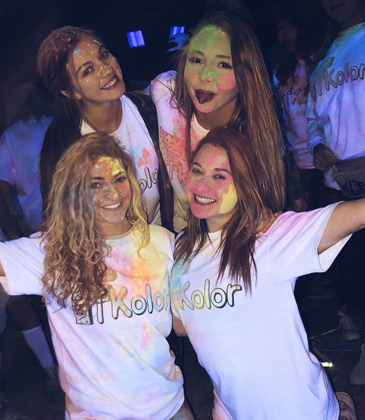 Last week many of our sisters participated in FTKolor, an exciting fundraising event in preparation for the 40-hour long Dance Marathon in March. For a donation, participants were given white t-shirts that they were able to decorate with over 1,000 pounds of glow in the dark paint! If you’ve ever heard of the color run, it is sort of like that but without the run!