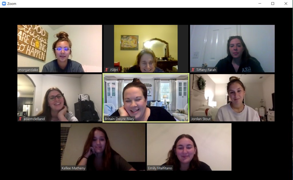 Our local alumnae chapter Epsilon Tau Epsilon didn’t let a pandemic stop them from sharing Hall of Commitment with us. In the Spring they hosted it via Zoom and in the Fall they hosted at the house. December graduation is usually smaller, so we were able to gather safely, six feet apart, with masks in the Formal Living Room and share our ritual. Thanks so much for all our seniors contributed to the chapter during their time at FSU and sending appreciation to our dedicated alumnae (now we can add to the alumnae ranks!)