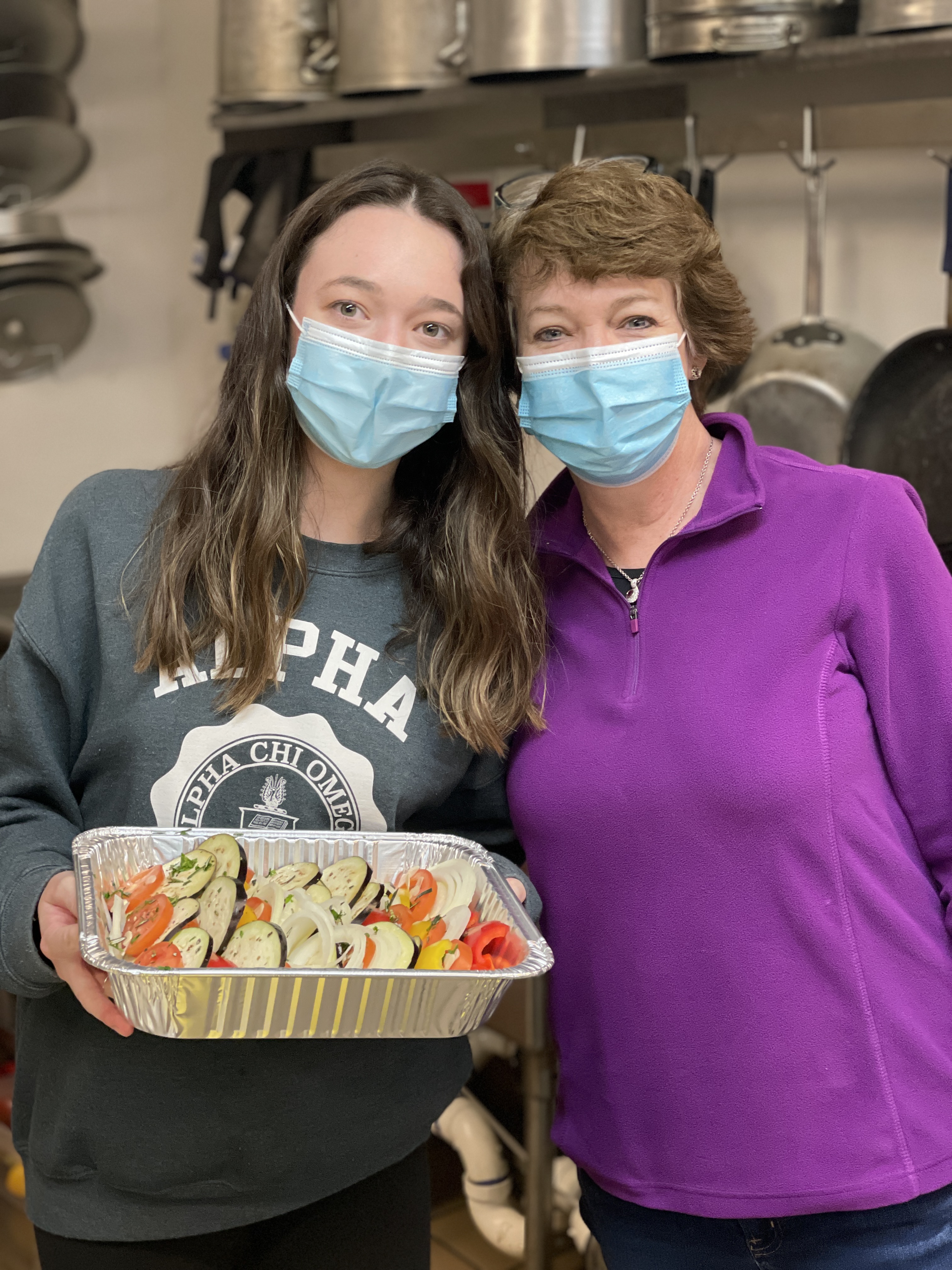 Sunday we partnered with local caterer Bluewater Cooking to cater a brunch. Members & guests signed up in shifts of 50 with time to sanitize in between. Sisters entered the front of the house where the signed in for their shift, and picked up any merchandise they ordered. They then flowed through dinning room where they picked up food, and were able to shop Campus Greek and Gypsy Rose boutique – from there they continued outside to eat under a tent with socially-distanced tables!