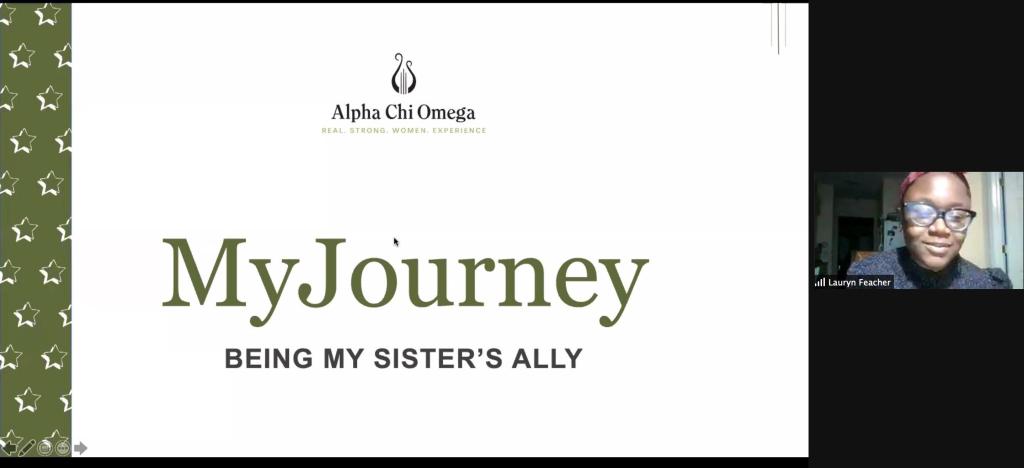 Three Vice Presidents collaborated to bring us a conglomeration interweaving our MyJourney based on “How to be My Sister’s Ally” and Hera Day: VP Membership Programming, Ayva; VP Diversity Equity Inclusion, Alara and VP Ritual Fraternity Appreciation, Leanne.