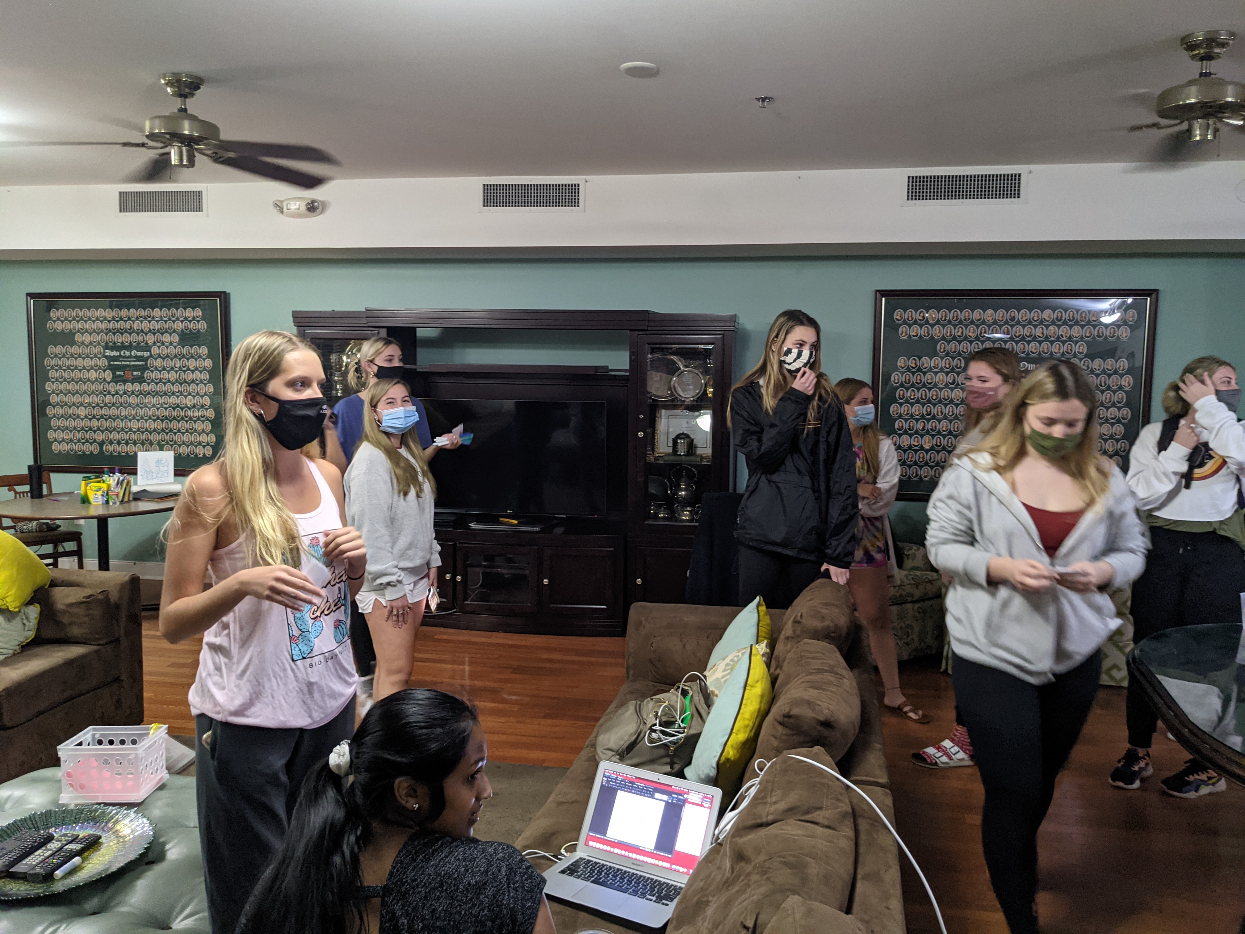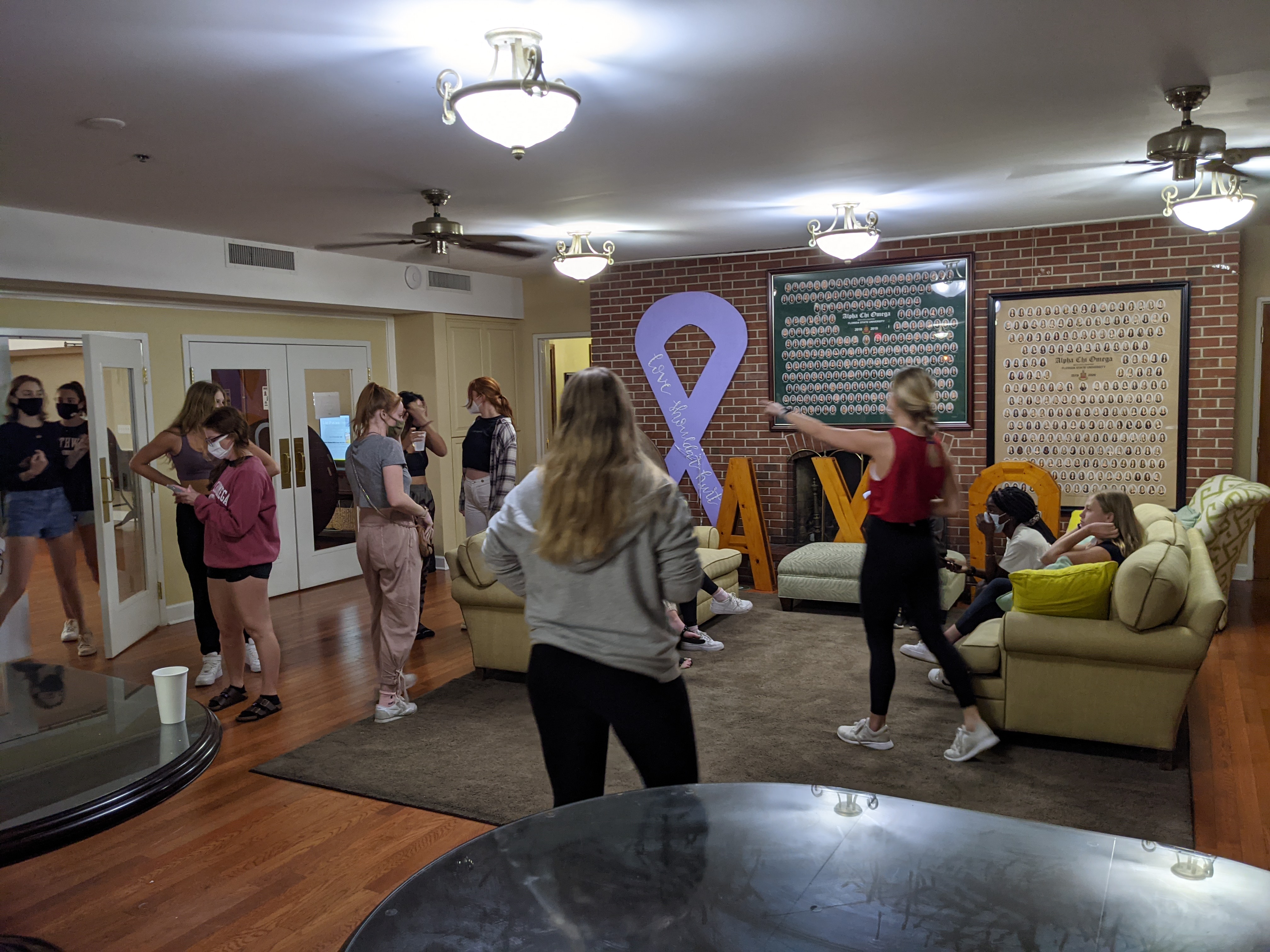 Lila and committee focused on activities to meld the Fall 20 and Spring 21 new members. One that was loud, fun and helped them learn more about each other was Game Night. As mentioned previously, this committee always showed up, gave 120%, and loved being together which showed to their younger sisters. They had three games led by the committee members – two in smaller groups and the finale in a big group. Our chapter is so fortunate for their gard work and the “let’s have fun” attitudes brought by the newest sisters.