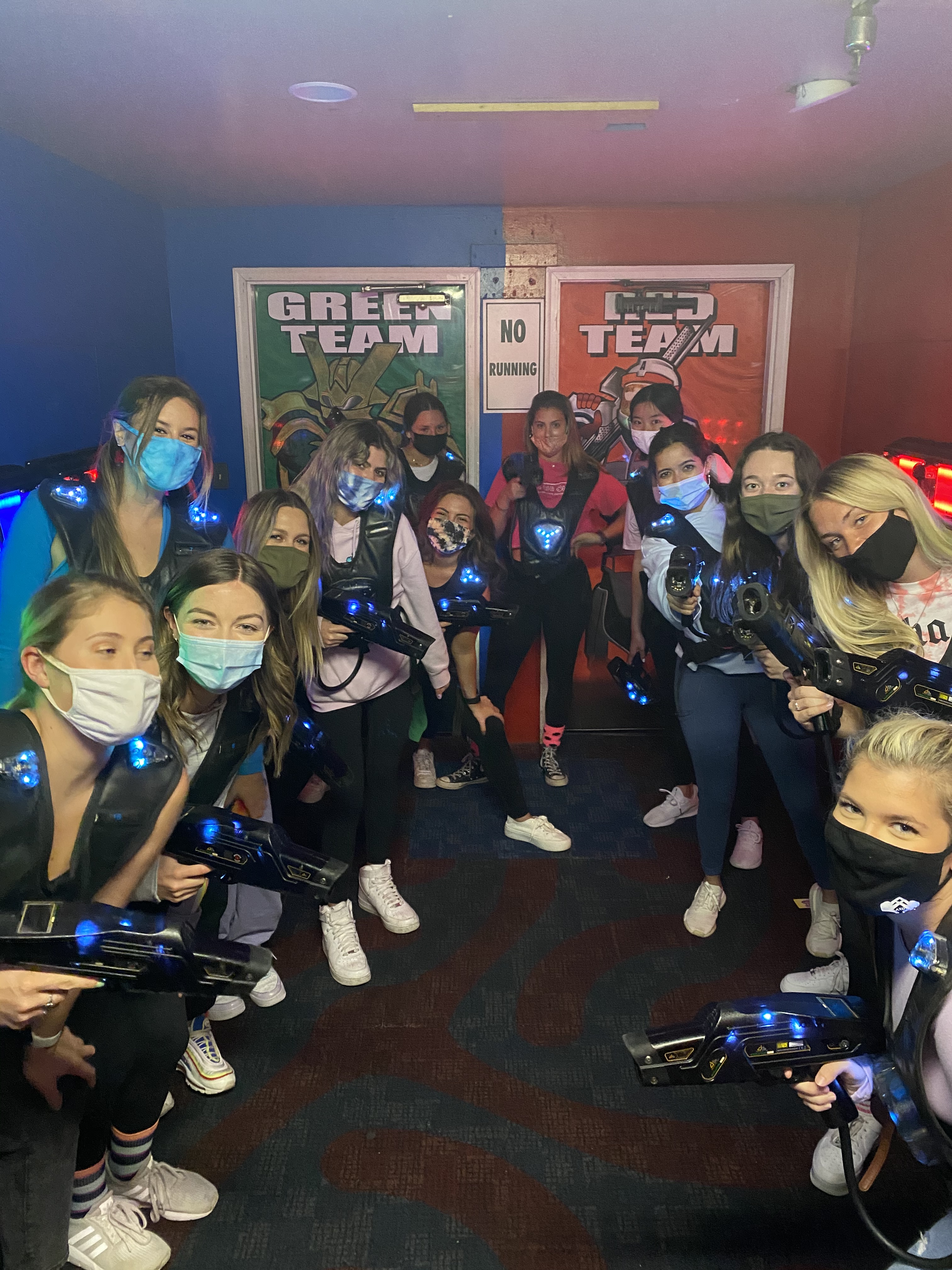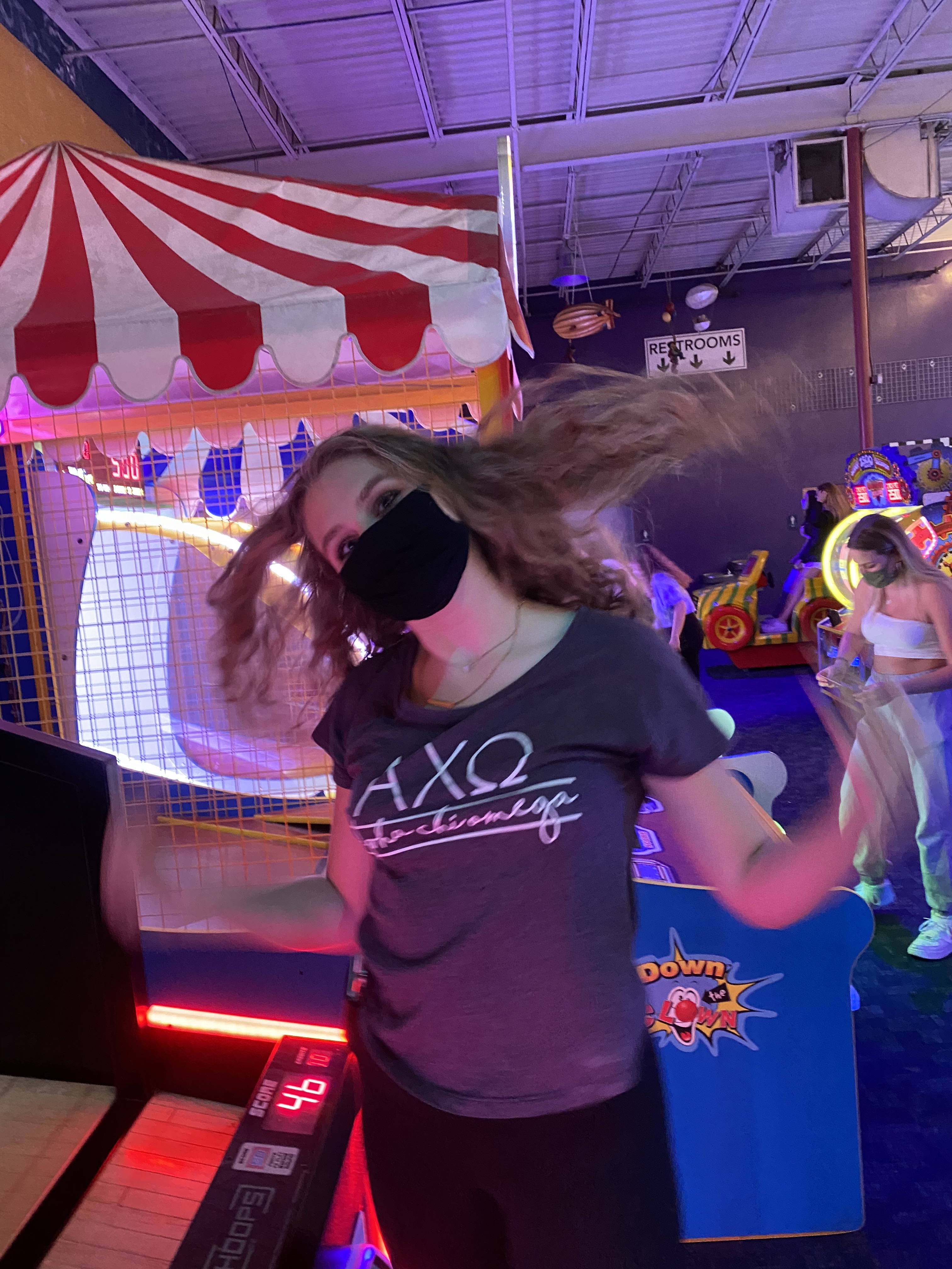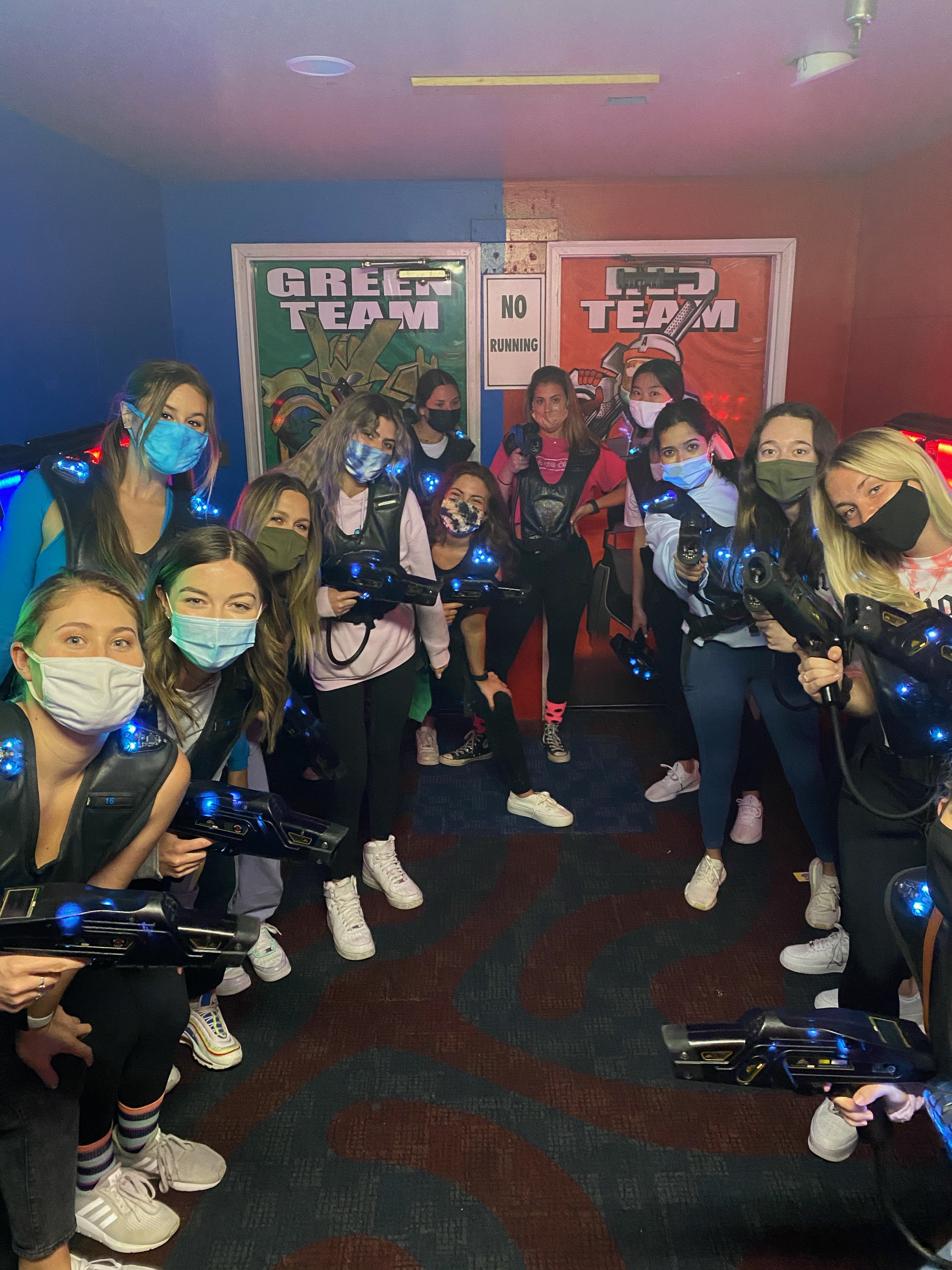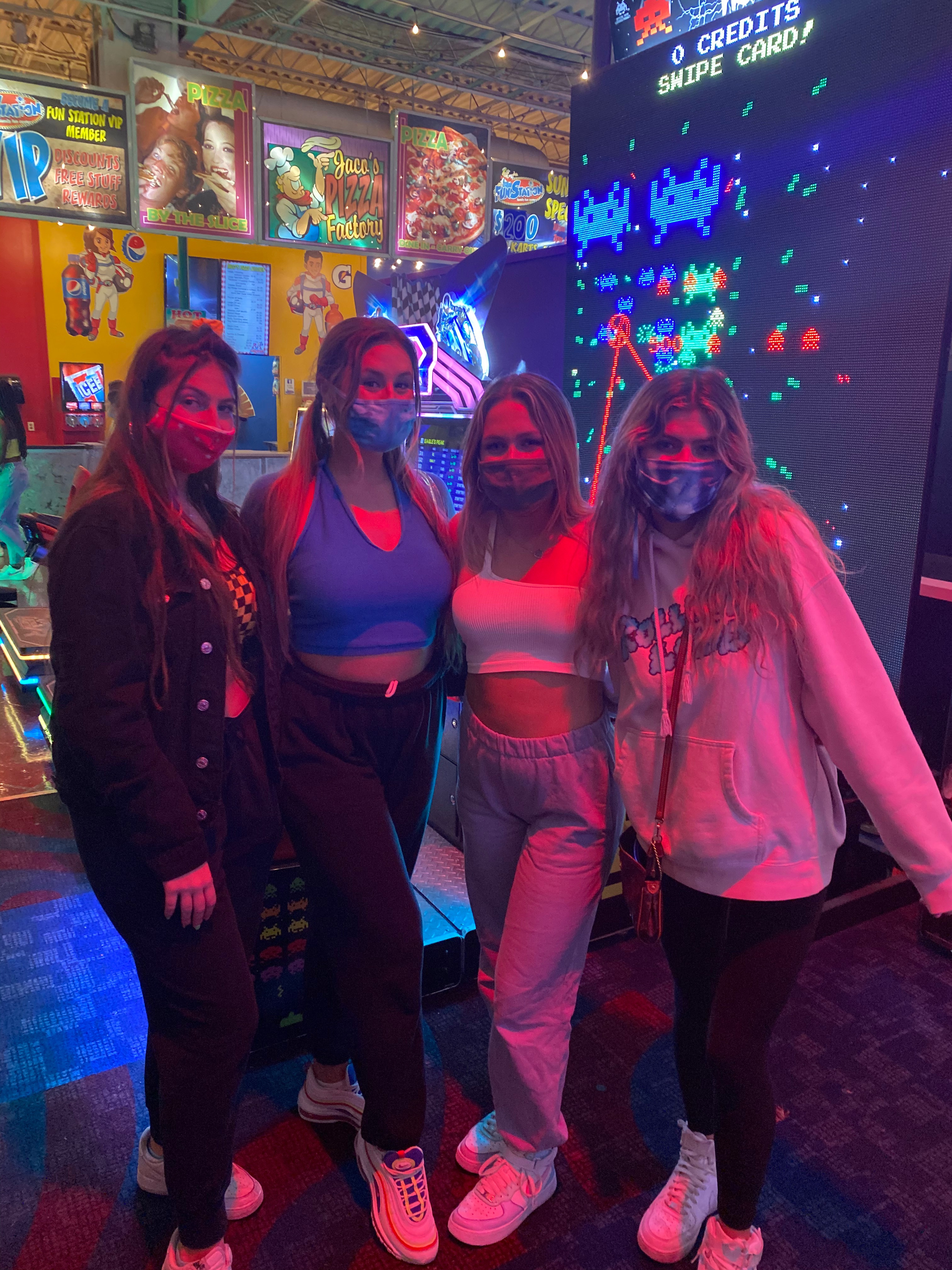 This week, the VP Membership Programming, Ayva & Sisterhood Retreat Chair, Addison planned an exciting sisterhood Night Out at local business: FunStation. Sisters could sign up to start outside or inside (to allow chapter to follow University Capacity Guidelines for COVID-19). After an hour of fun, sisters then switched locations. Inside sisters were able to enjoy the arcade, laser tag & individual dinners. (Pizza or Salads). Outside sisters enjoyed go-karts, putt-putt golf, the sizzler and more.. Sisters had a great time and we can’t wait till our sisterhood night out next week at Hanger 38!