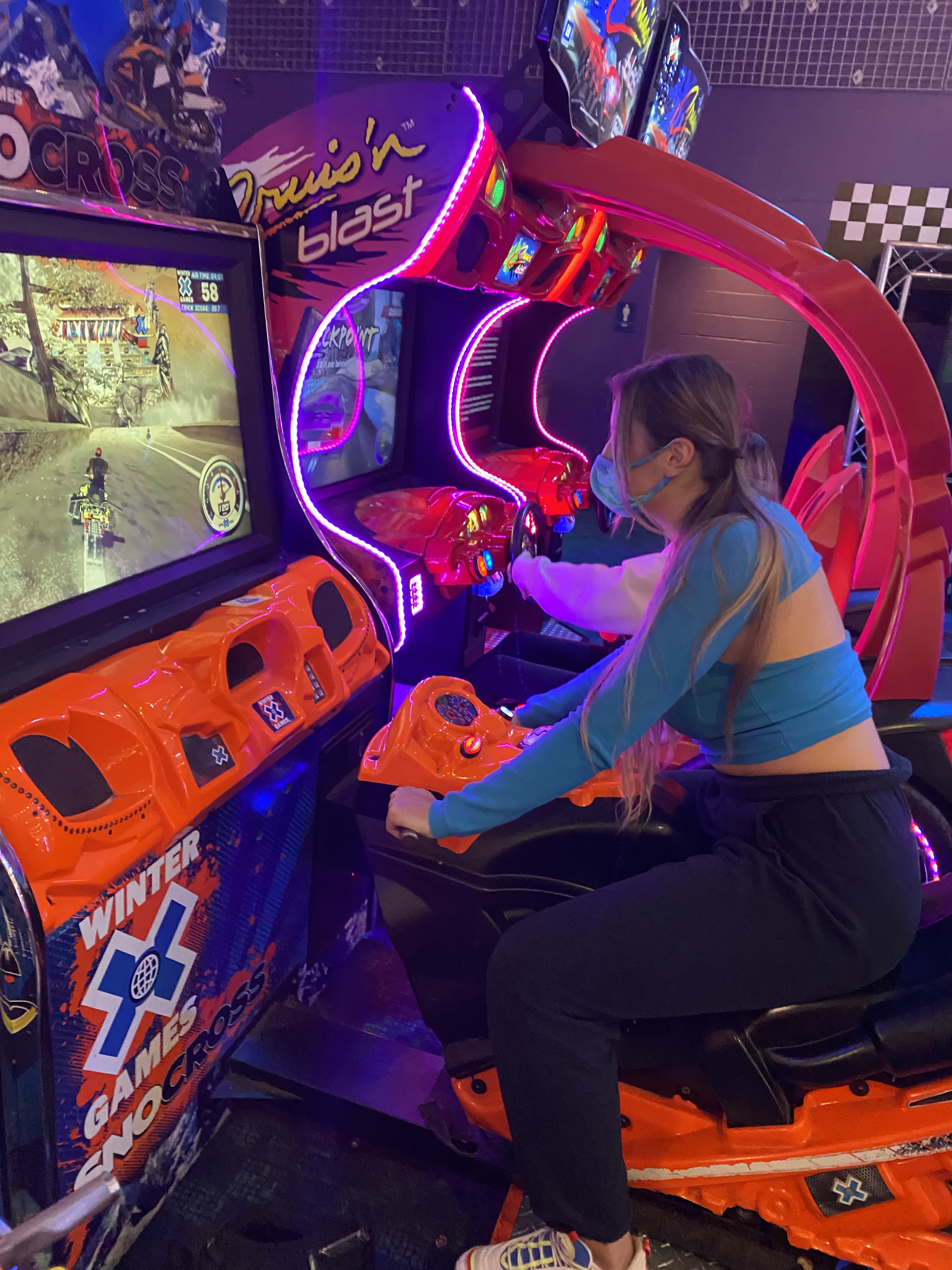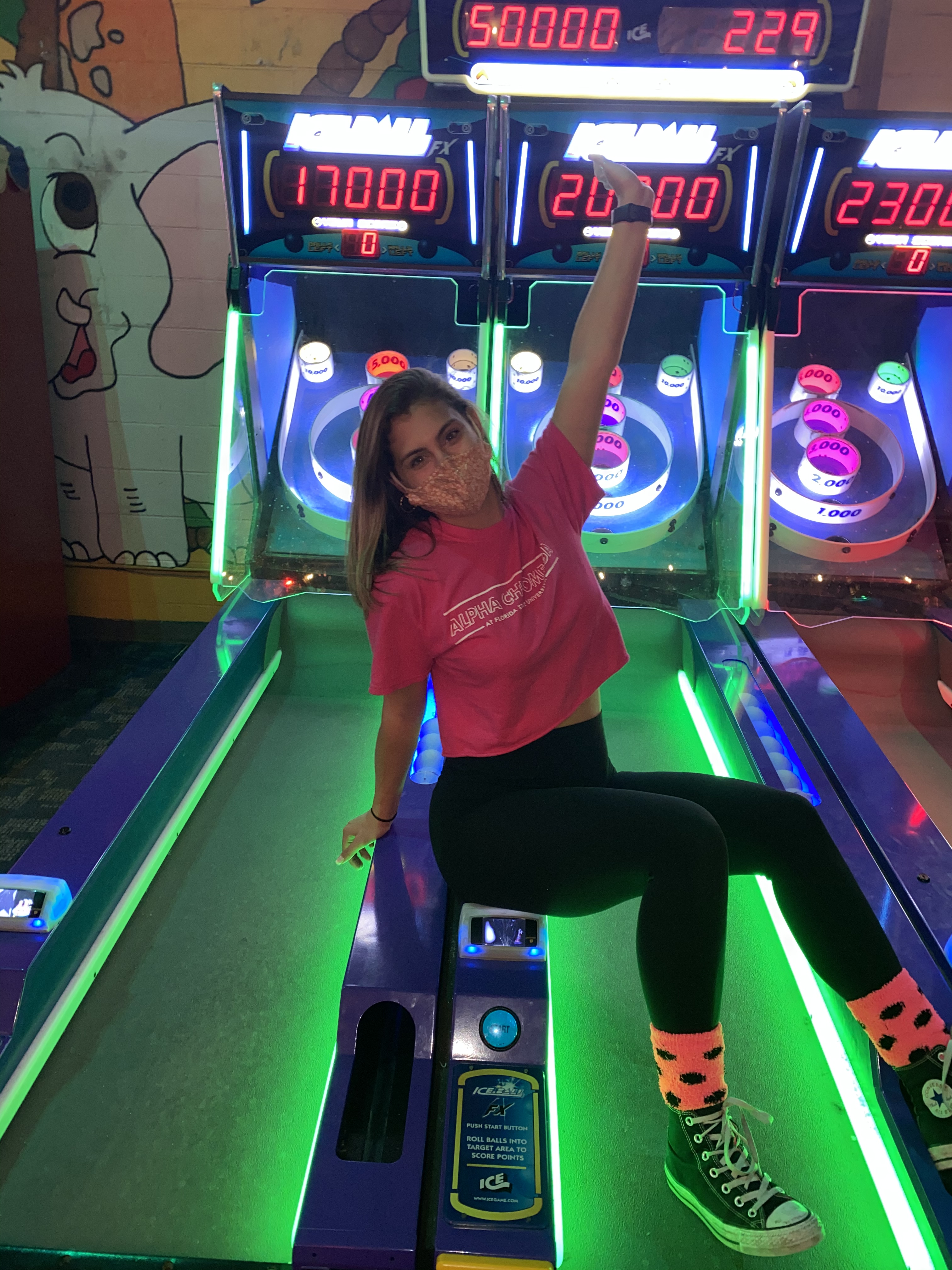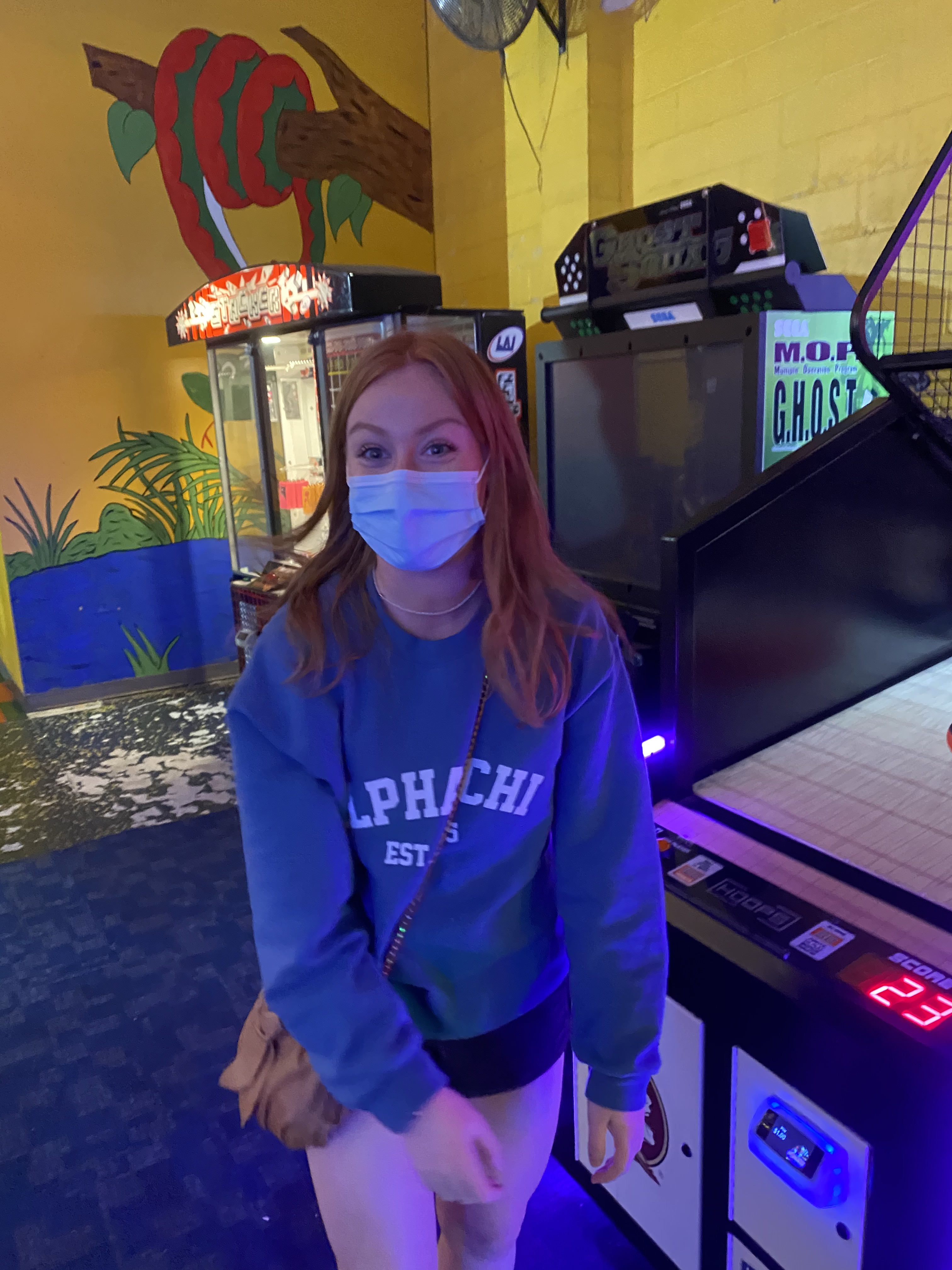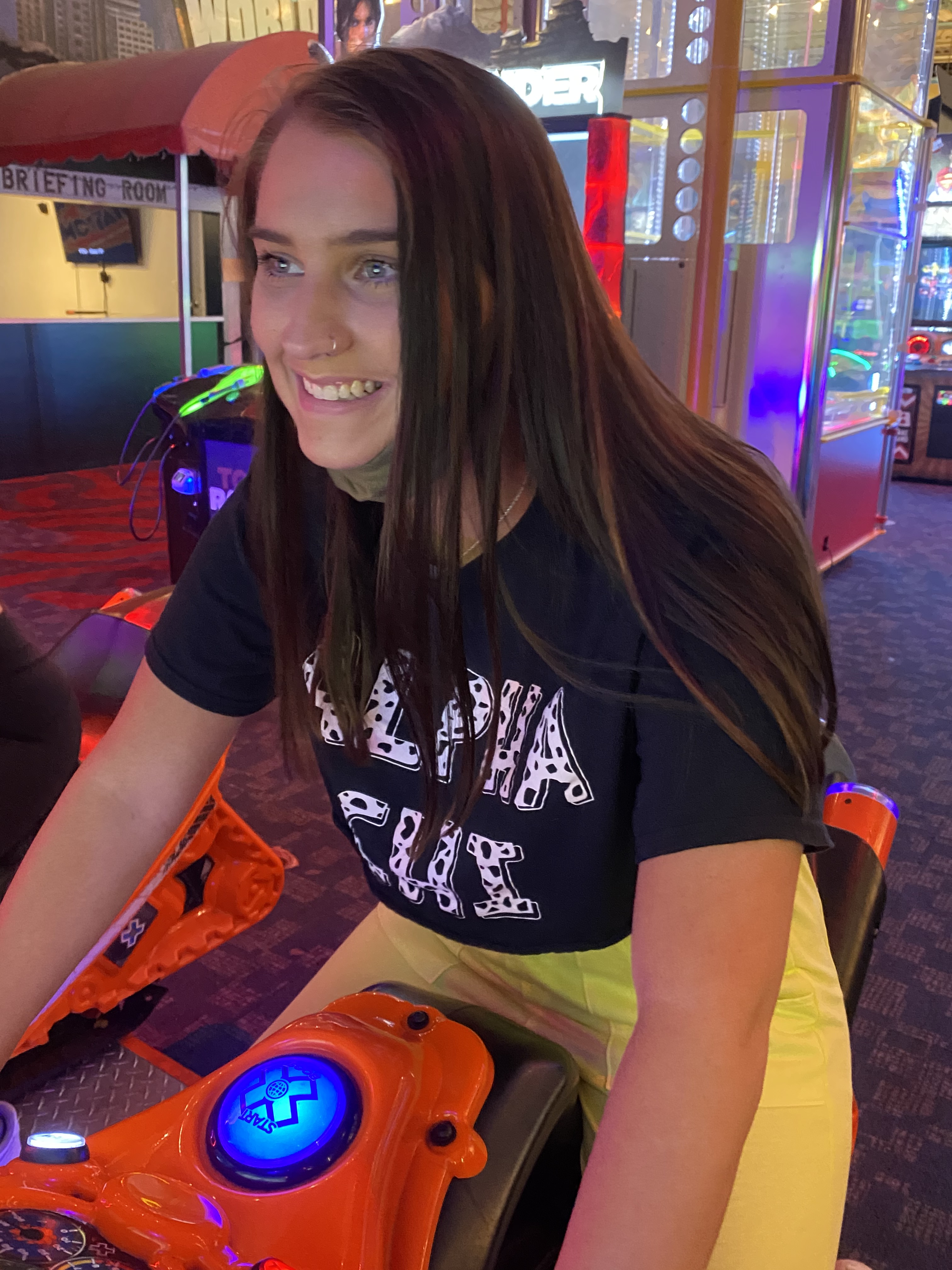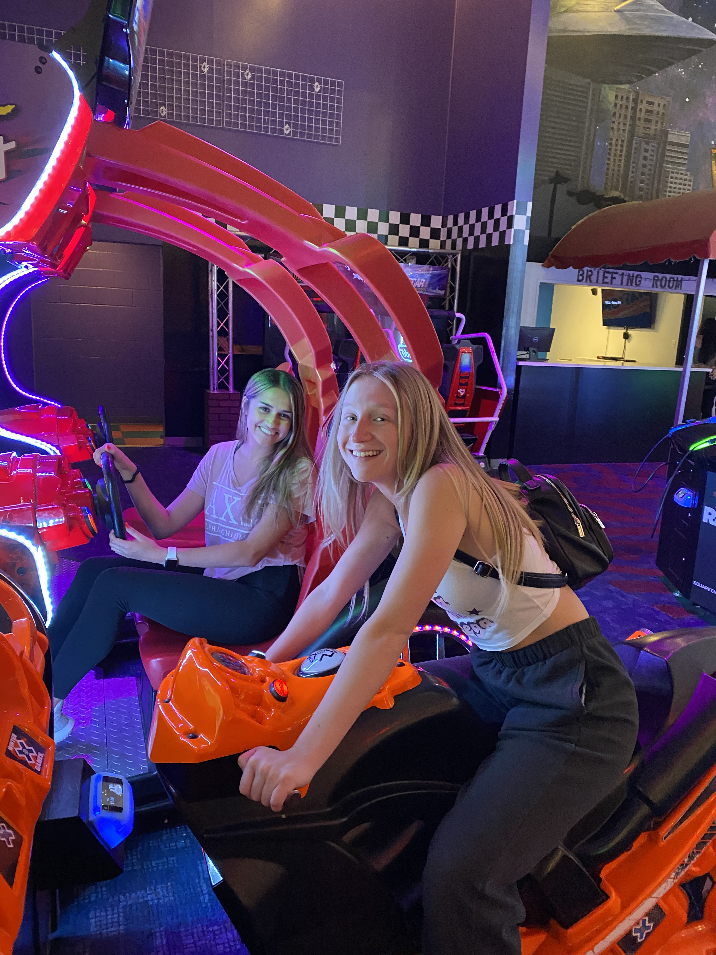 This week, the VP Membership Programming, Ayva & Sisterhood Retreat Chair, Addison planned an exciting sisterhood Night Out at local business: FunStation. Sisters could sign up to start outside or inside (to allow chapter to follow University Capacity Guidelines for COVID-19). After an hour of fun, sisters then switched locations. Inside sisters were able to enjoy the arcade, laser tag & individual dinners. (Pizza or Salads). Outside sisters enjoyed go-karts, putt-putt golf, the sizzler and more.. Sisters had a great time and we can’t wait till our sisterhood night out next week at Hanger 38!