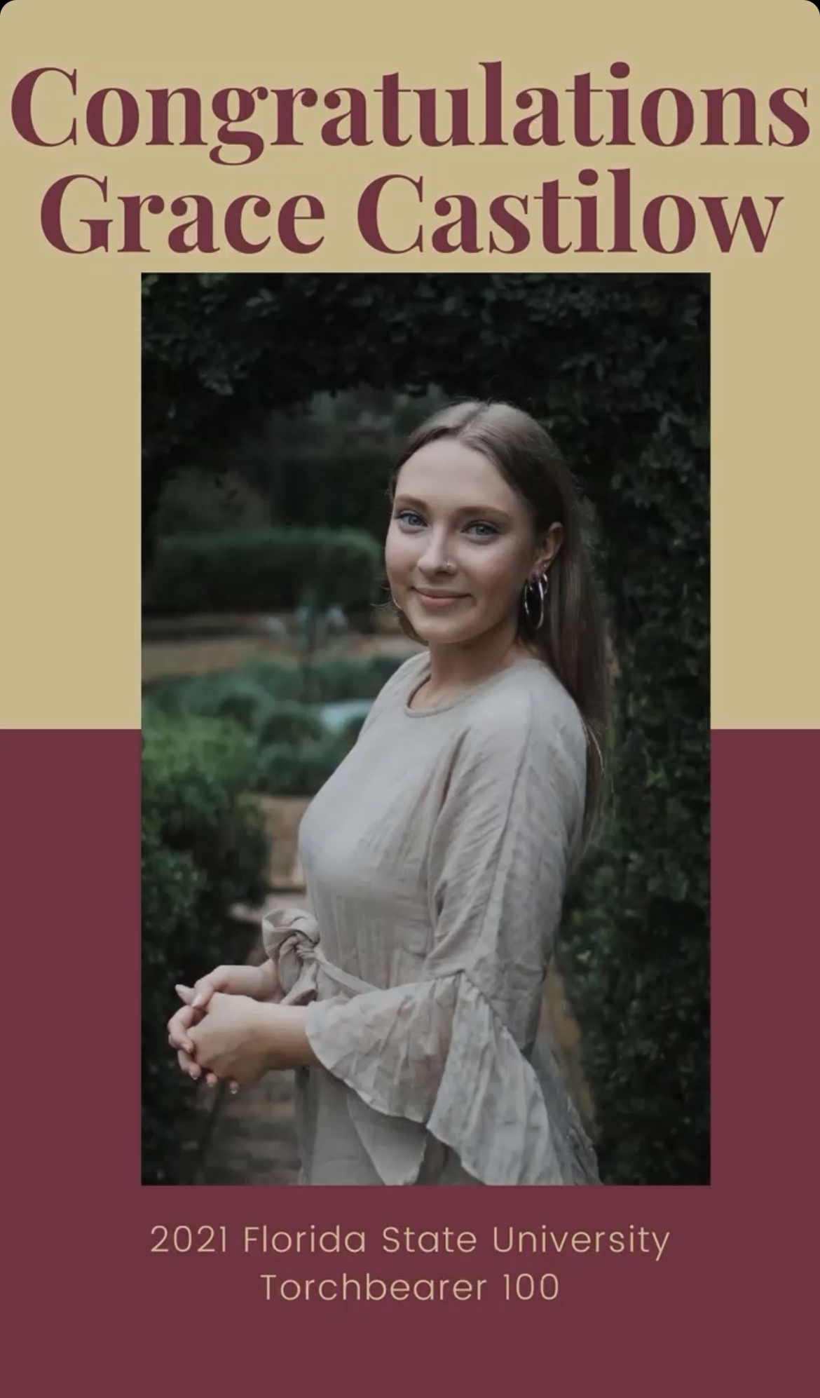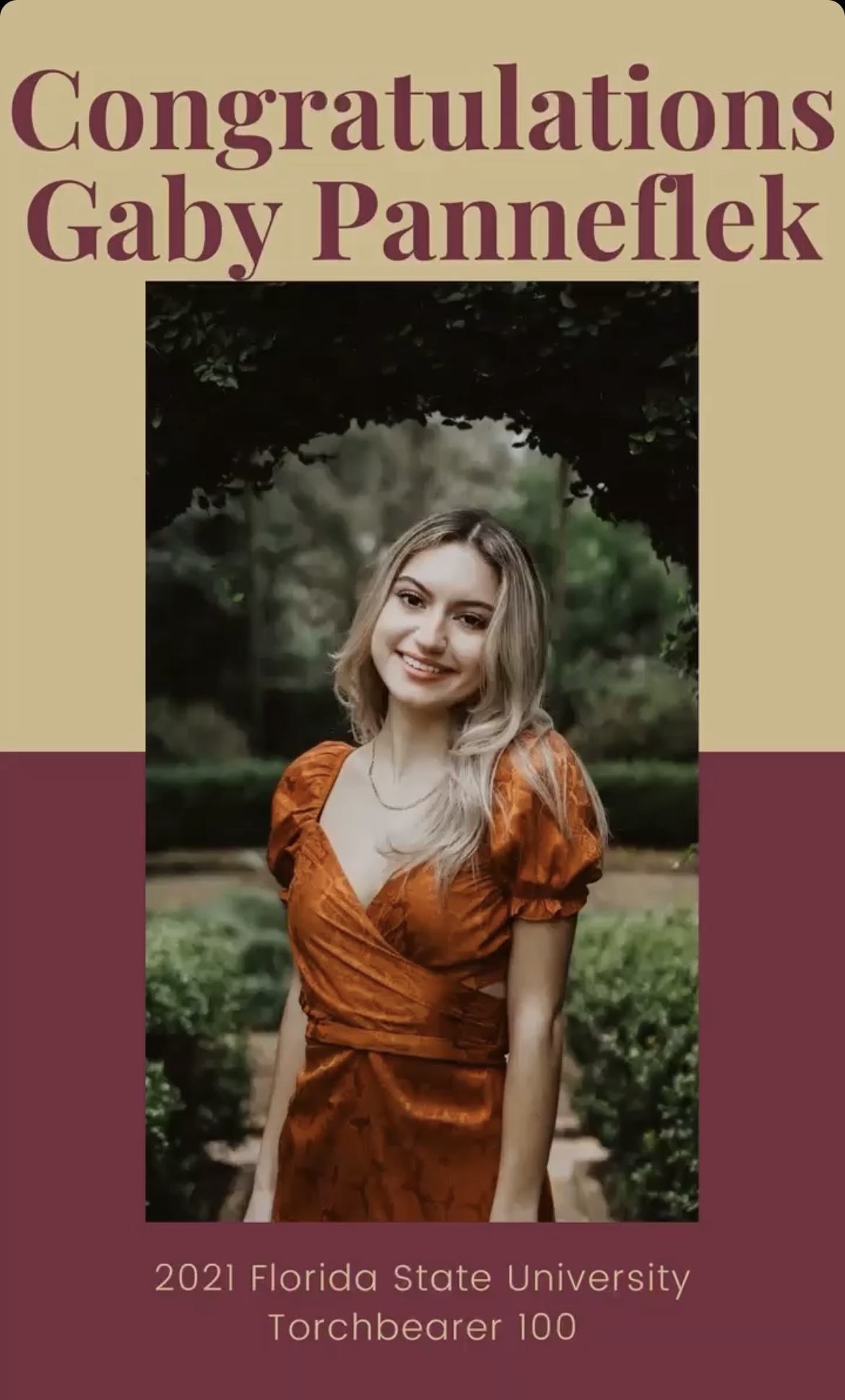 The Torchbearer 100 leans on the fact that as an individual grows, their potential grows with them and that this growth creates avenues for an exponential positive impact on their communities. We know this to be true because this is the history, tradition, and spirit of student leaders at Florida State.
