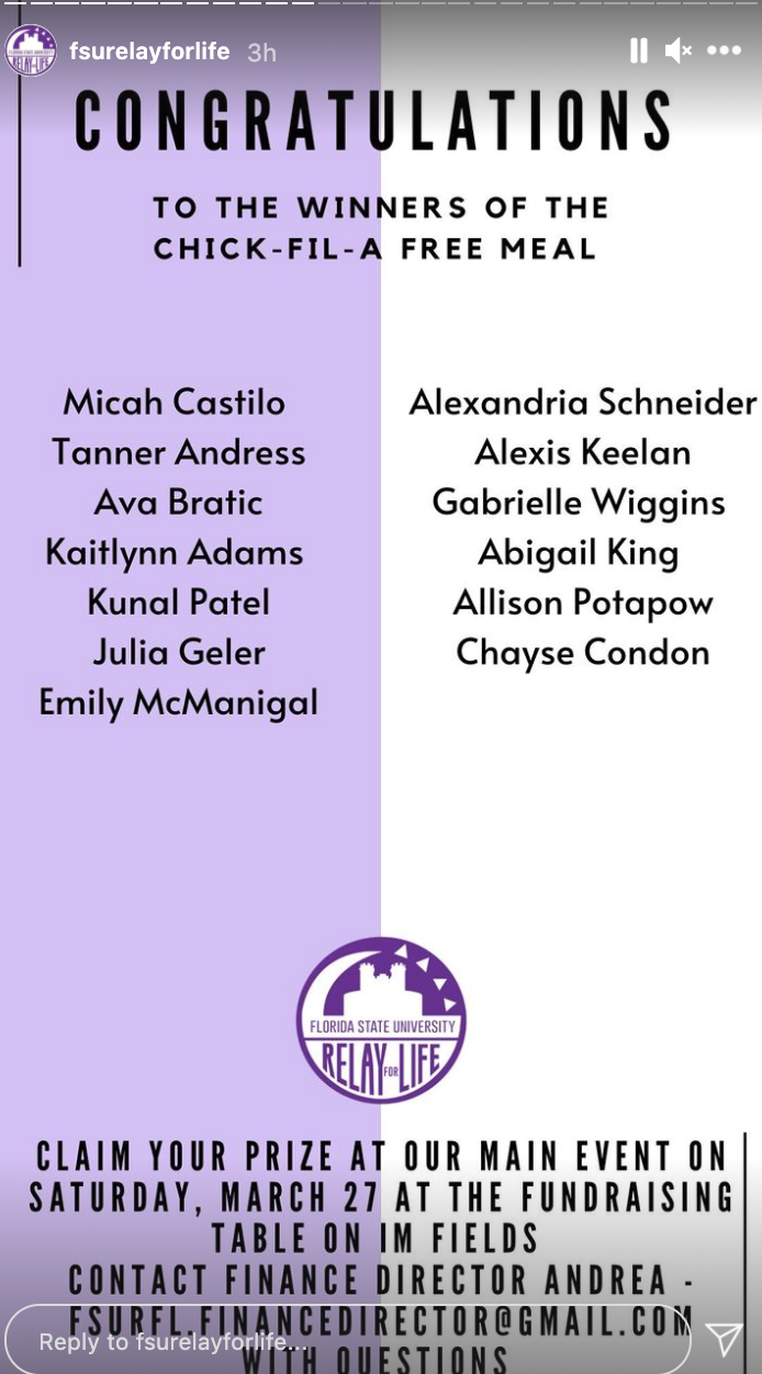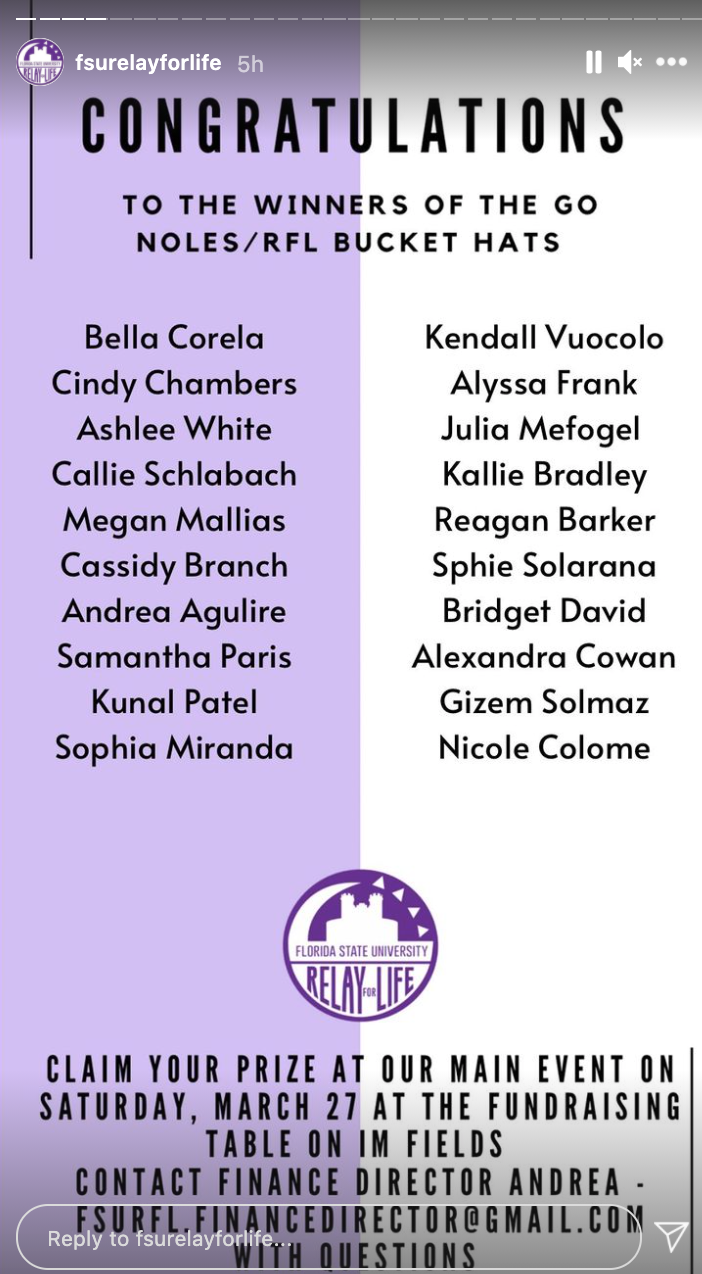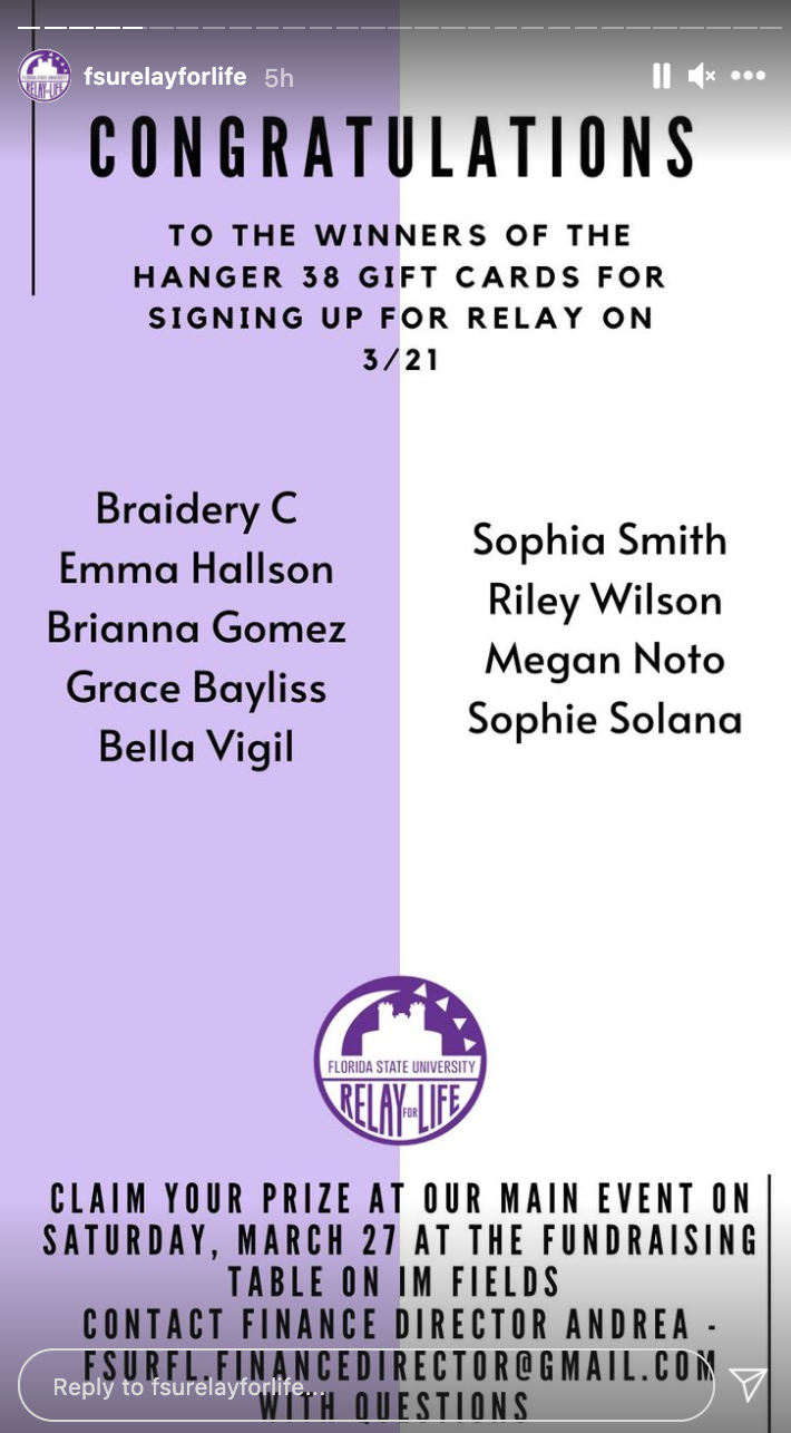 Relay for Life FSU raised $116,301 & the Alpha Chi Omega team raised $6797.57 putting the team in 3rd place!!!! (just $784 behind team 2)