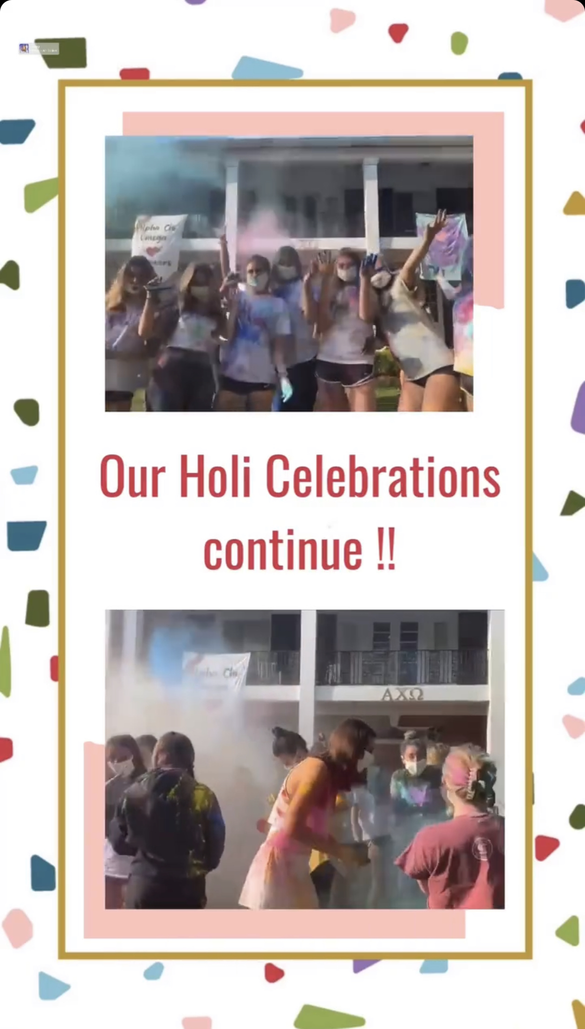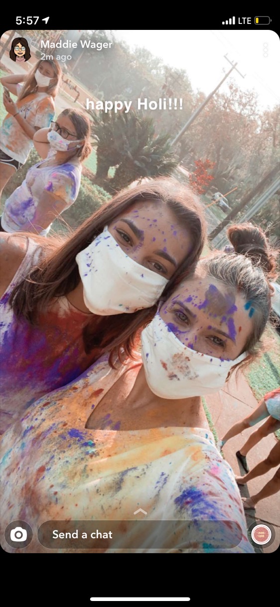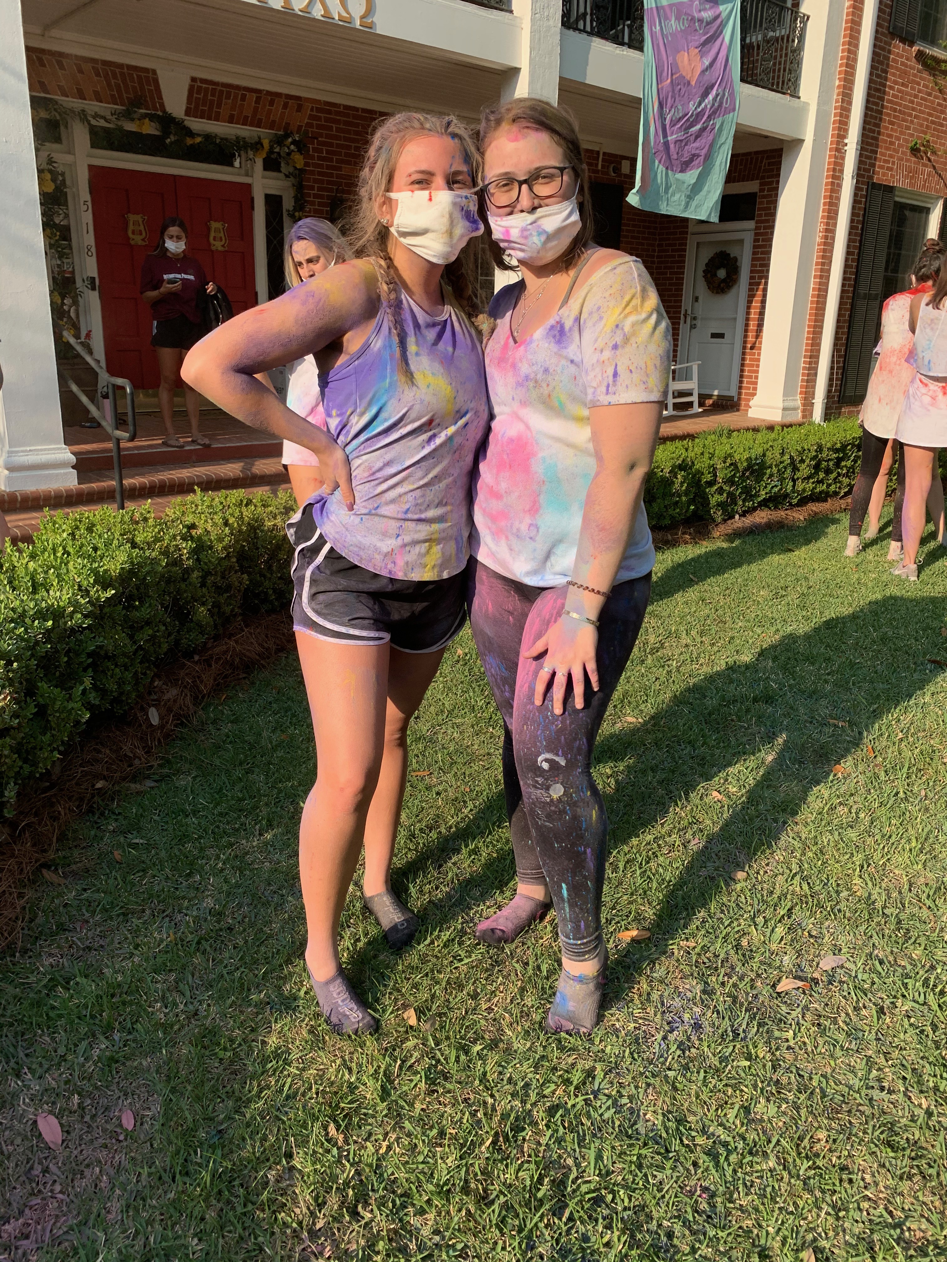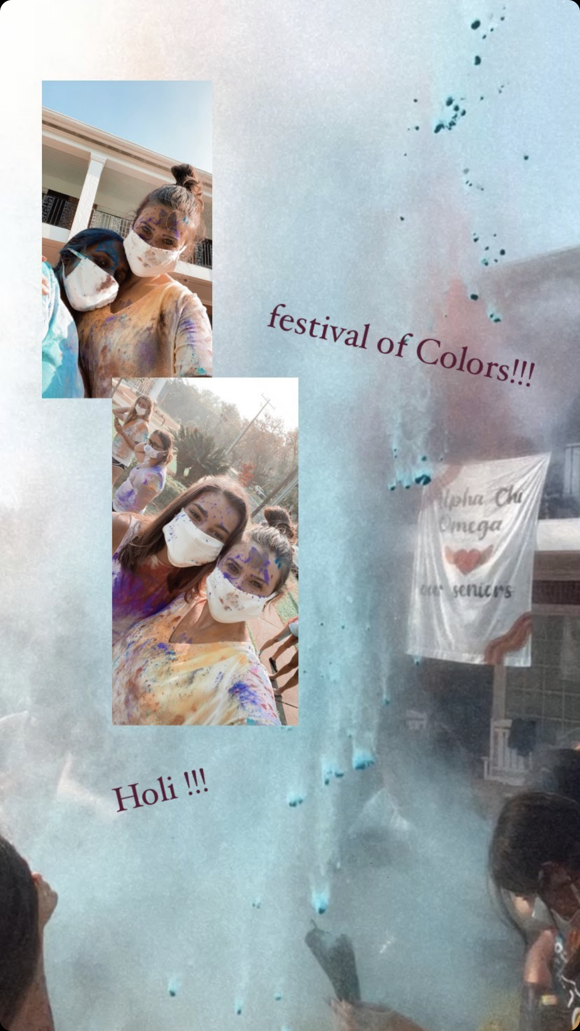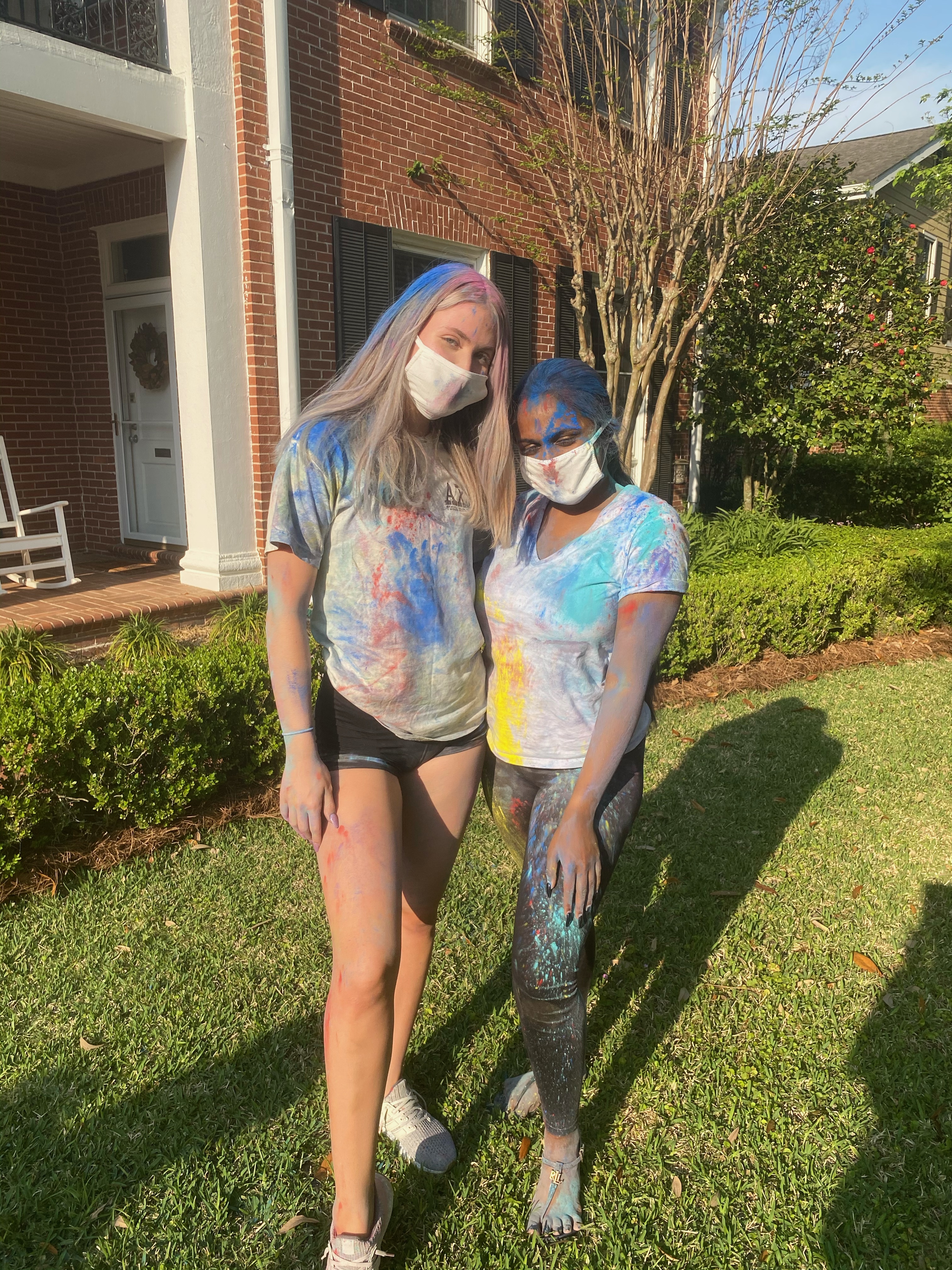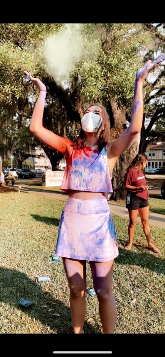This week the ladies of Alpha Chi hosted a Holi celebration. Known as the festival of colors – the celebration consisted of the VP Diversity, Equity and Inclusion, Alara & Cultural Chair, Natasha sharing information about the Holiday and the significance of the colors – followed by sisters throwing colored powder!