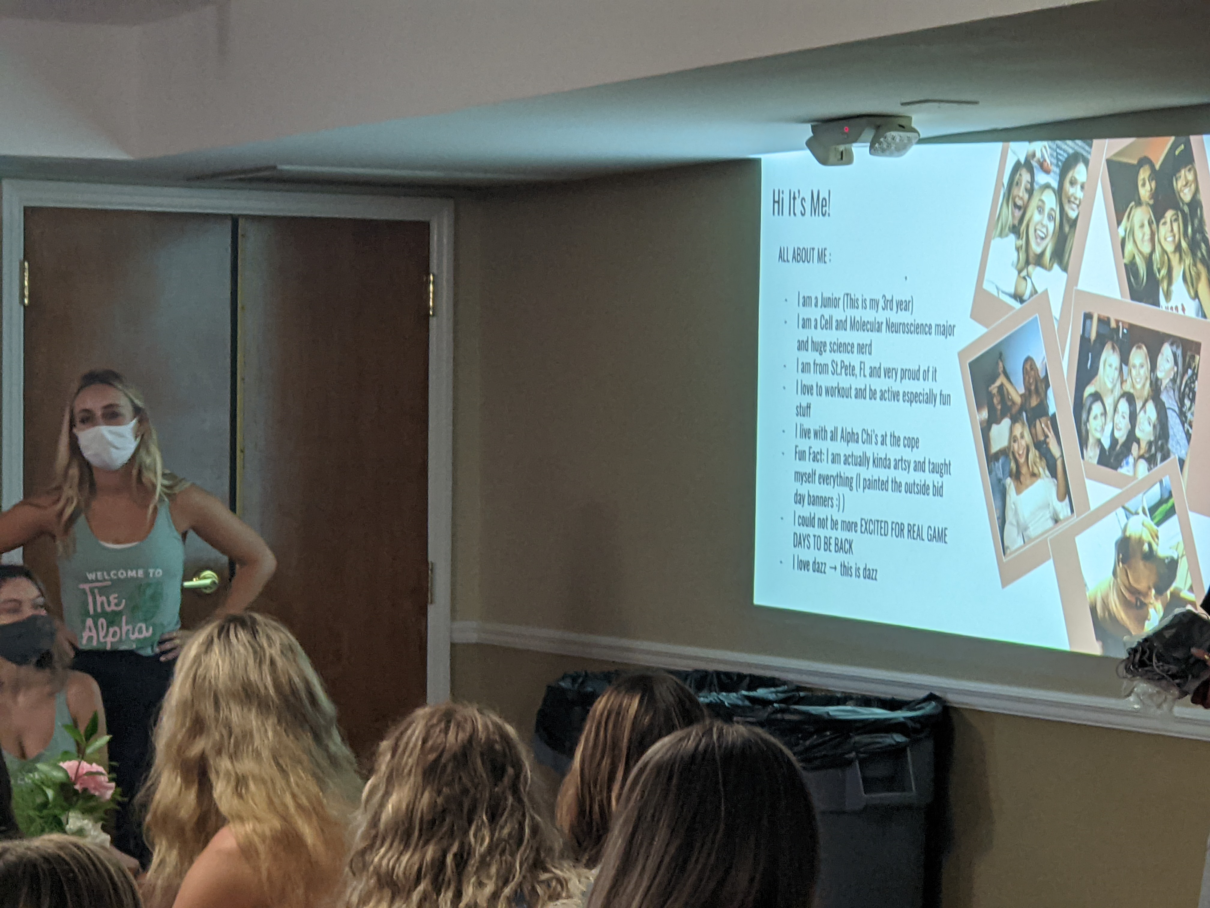 They always started with a new ice breaker and ended with a mystagogue reveal making the evenings productive, insightful, and amusing. Different speakers at each meeting also helped reinforce the sisterhood connections and options available at Alpha Chi Omega and Florida State University.
