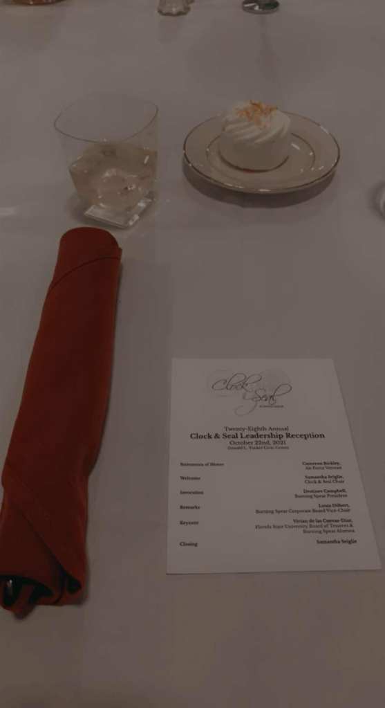 Clock & Seal is a core tradition and a highlight of the Homecoming weekend festivities. Since its inception in 1995, Clock & Seal has hosted chief names in various spheres of leadership, as well as icons of Seminole lore. Attended by a vibrant mix of current and past campus leaders, FSU faculty, staff and administration, Clock & Seal has become the must-have ticket for every Seminole fan. The ladies of Alpha Chi Omega were excited to see Clock & Seal return after it was canceled in 2020, due to the pandemic.