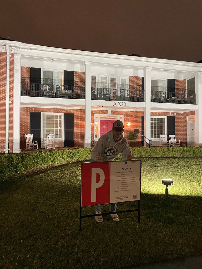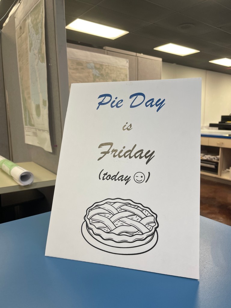 Well, it’s official the signs are up for public notice of the new build! After the signs were up and photos were snapped, CA- Britain and HD- Brittany traveled to have the affidavit notarized & items submitted to the city to make it official. Fun story, while getting things notarized at the local blueprint shop – the ladies learned every Friday is pie day and the owner passes out homemade pie to all who come in.