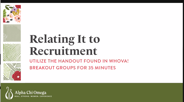 Krystal N. Clark then joined Alpha Chi Omega to speak on inclusivity and belonging in recruitment. In this session, we learned about what it means to create a sense of belonging and how we can continue to be more inclusive in our chapter. Krystal discussed the changing landscape of campus and Panhellenic life. She spoke to how implicit bias plays a role during recruitment and identity biases that may exist. After spending time with Krystal today, we see the role we play as a leader in cultivating a more diverse and inclusive recruitment and membership experience.