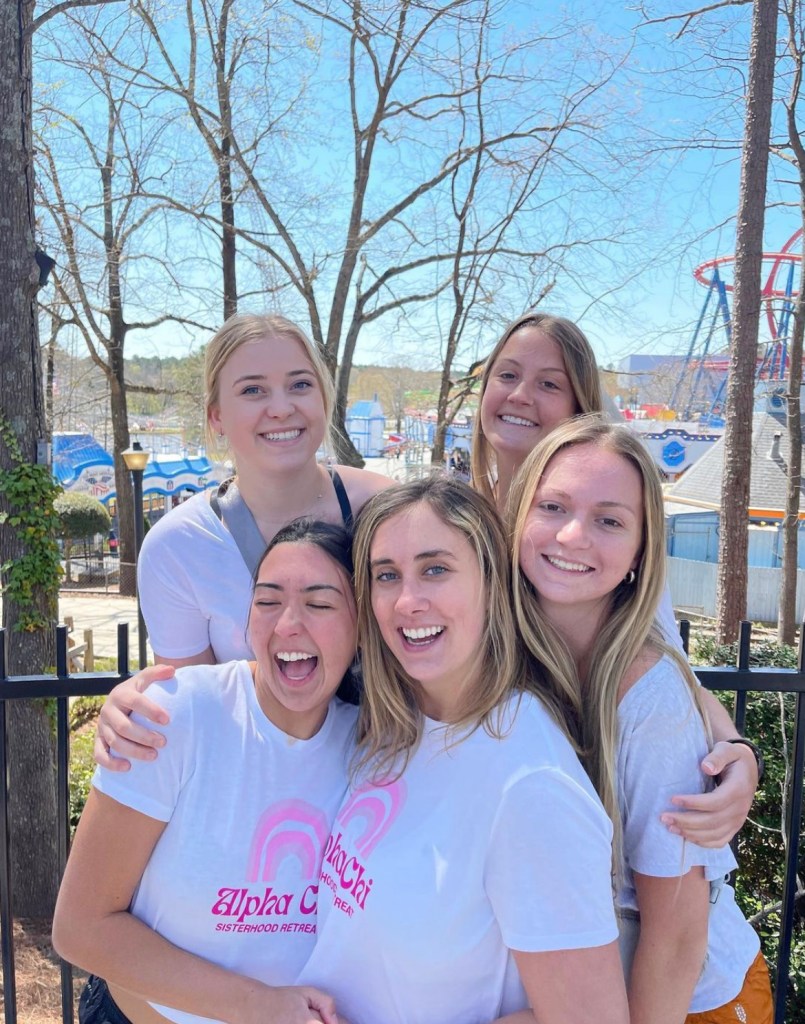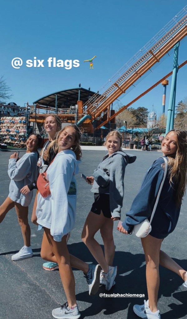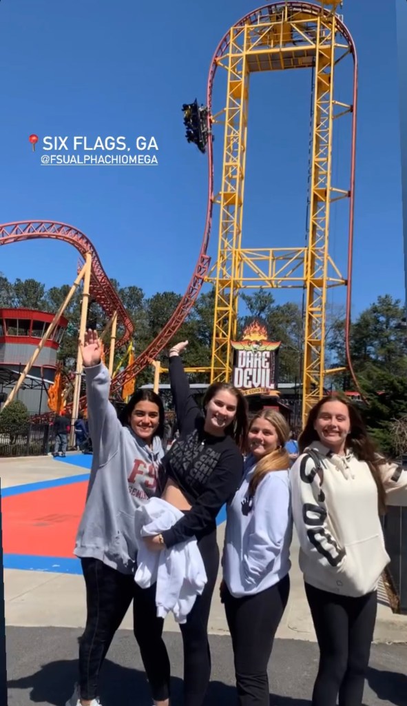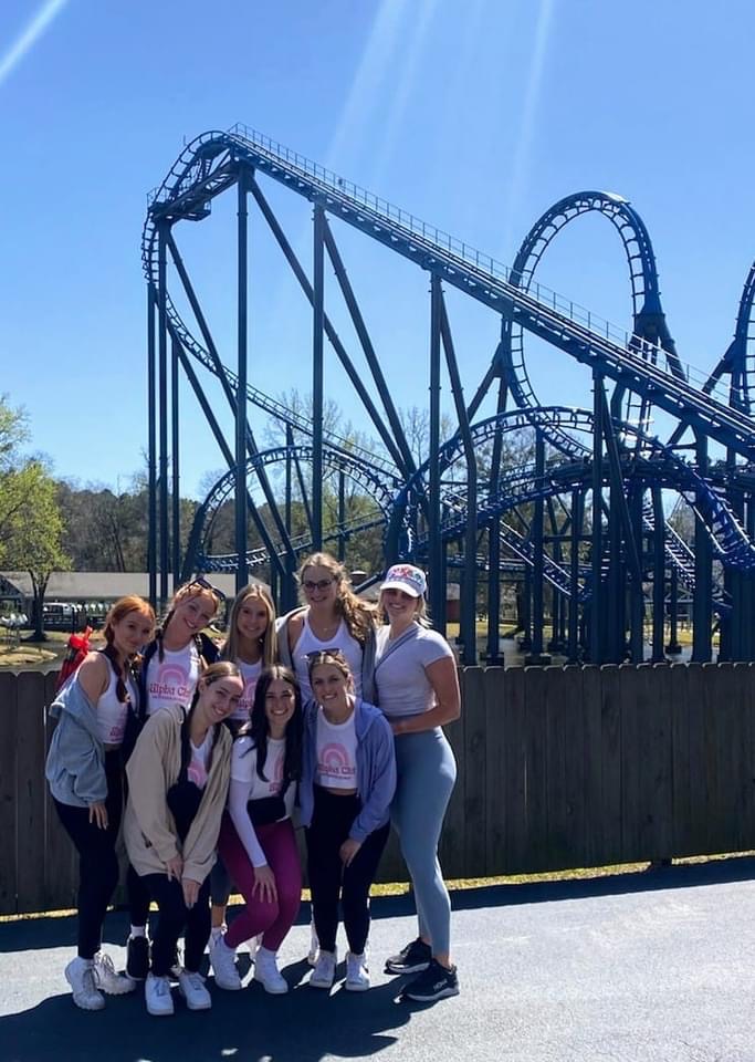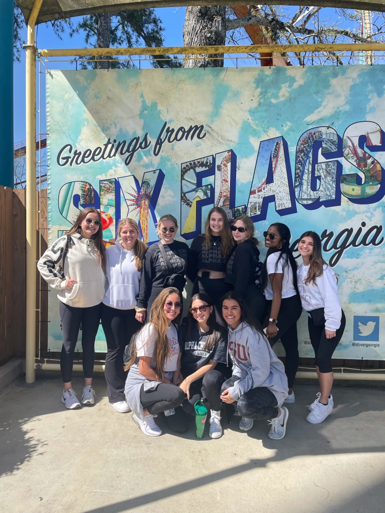 With mid-terms behind us and finals ahead – our VP Membership Programming, Leah and Sisterhood Chair, Maya planned a getaway for the day to Six Flags over Georgia. Nearly 200 sisters meet at 518 at 4:30 AM, grabbed a breakfast-to-go bag prepared by the Membership Programming Committee – complete with a drink, fruit, bagel, etc. and got on a bus headed to Georgia. Once there we enjoyed the day at the theme park, included in the ticket was a snack, bottle of water and lunch. After a day of fun, we grabbed dinner to go and headed to the buses to head back to Tallahassee! Great memories were made!