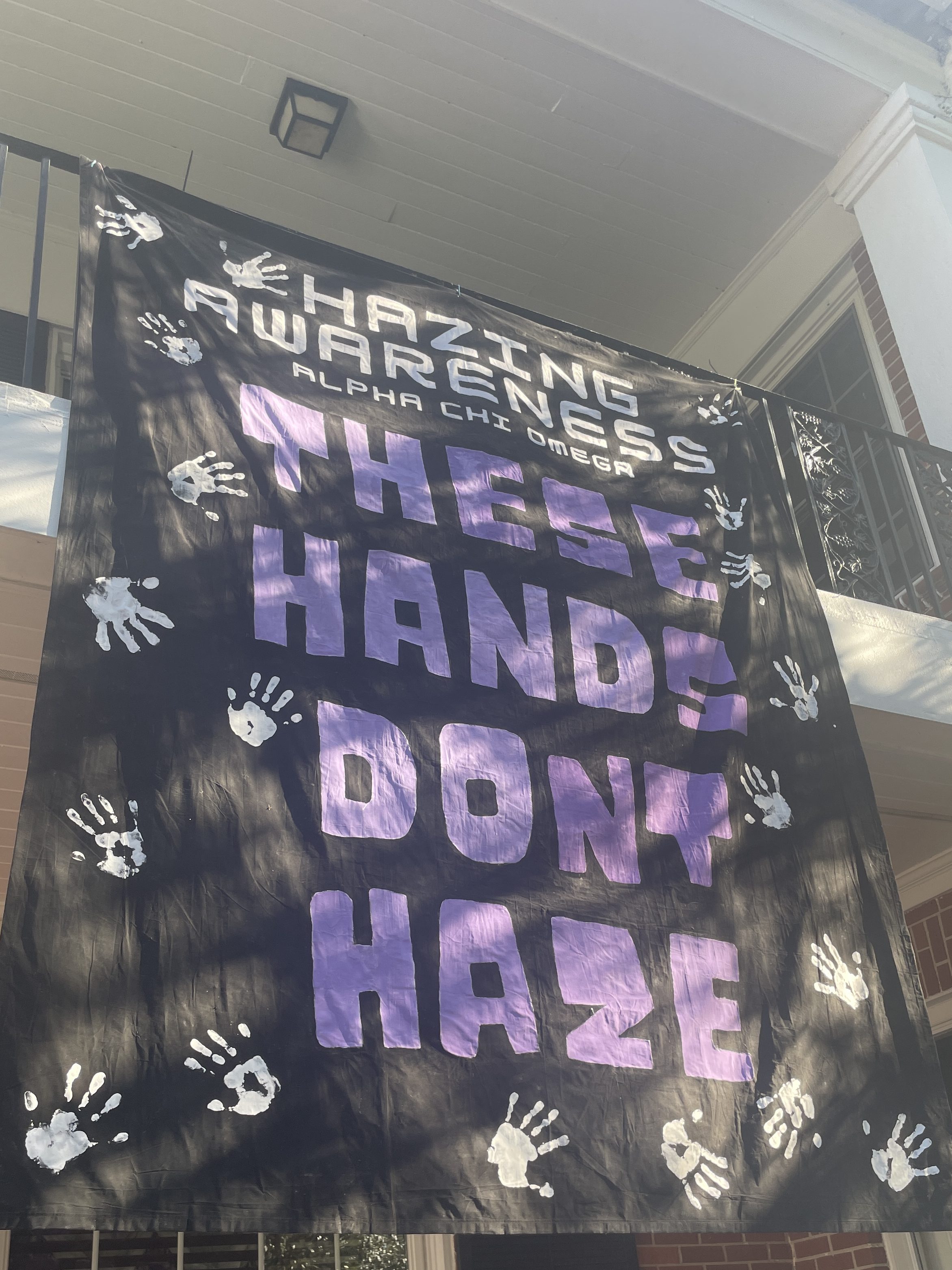 Alpha Chi Omega, Zeta Tau Alpha, Pi Kappa Phi and Sigma Nu partnered to develop a hazing prevention education digital poster focused on hazing state laws and the fact that hazing activity is illegal.