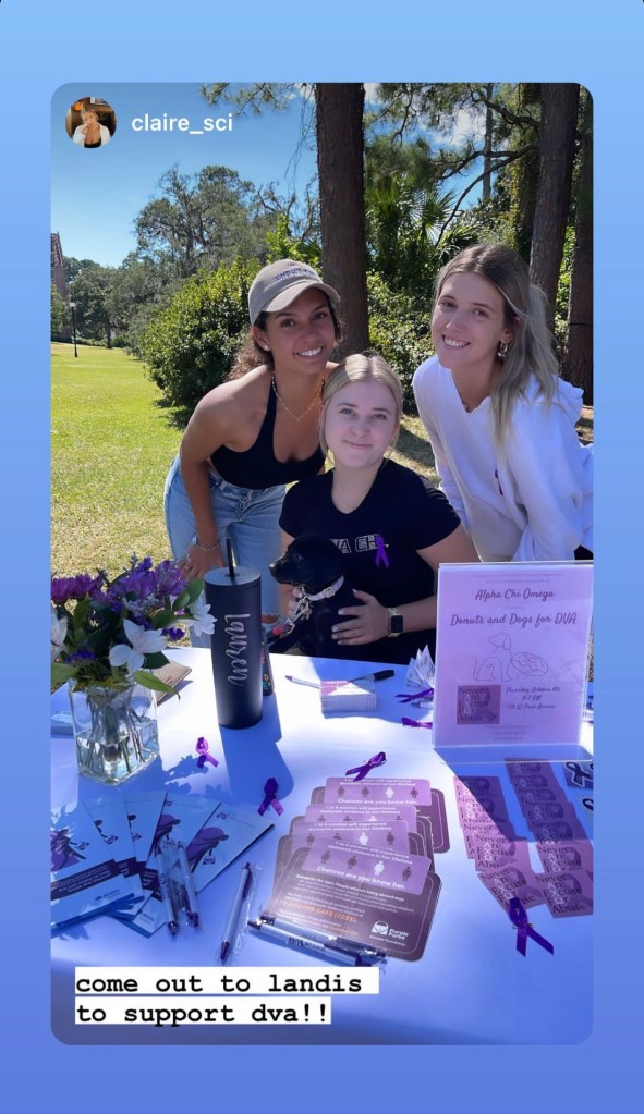 This week sisters tabled on Landis Green to raise awareness for DVA. They passed out promotional materials, along with resources & engaged with students, faculty and staff to share information about this important cause and how individuals can get involved and make a difference.