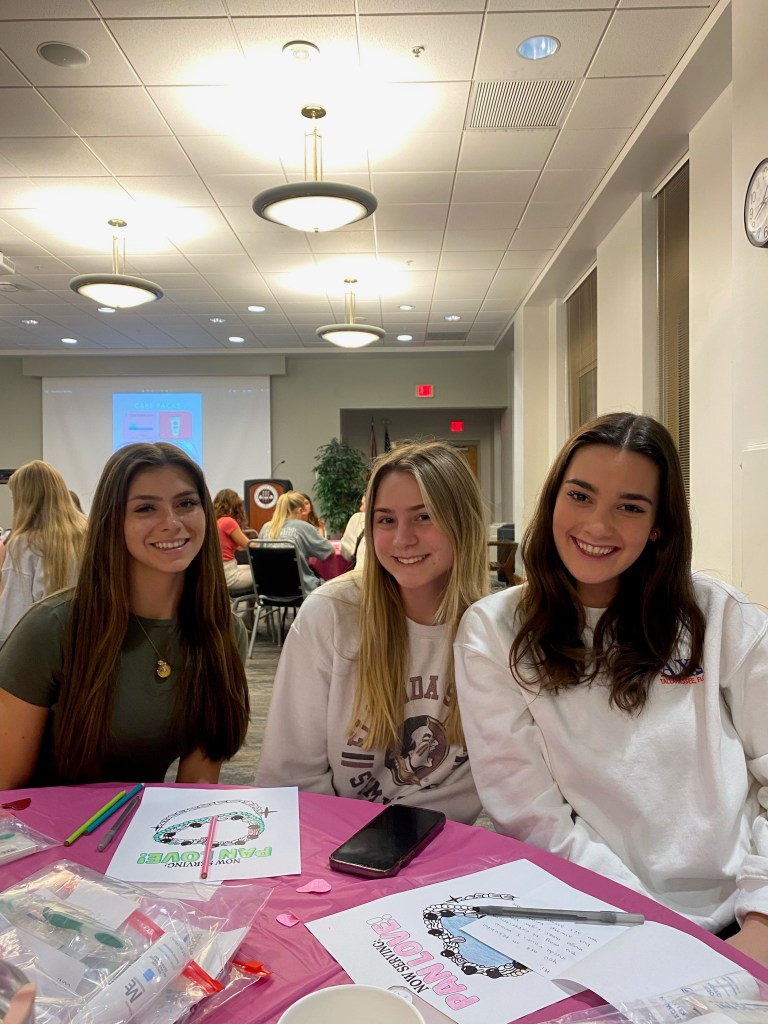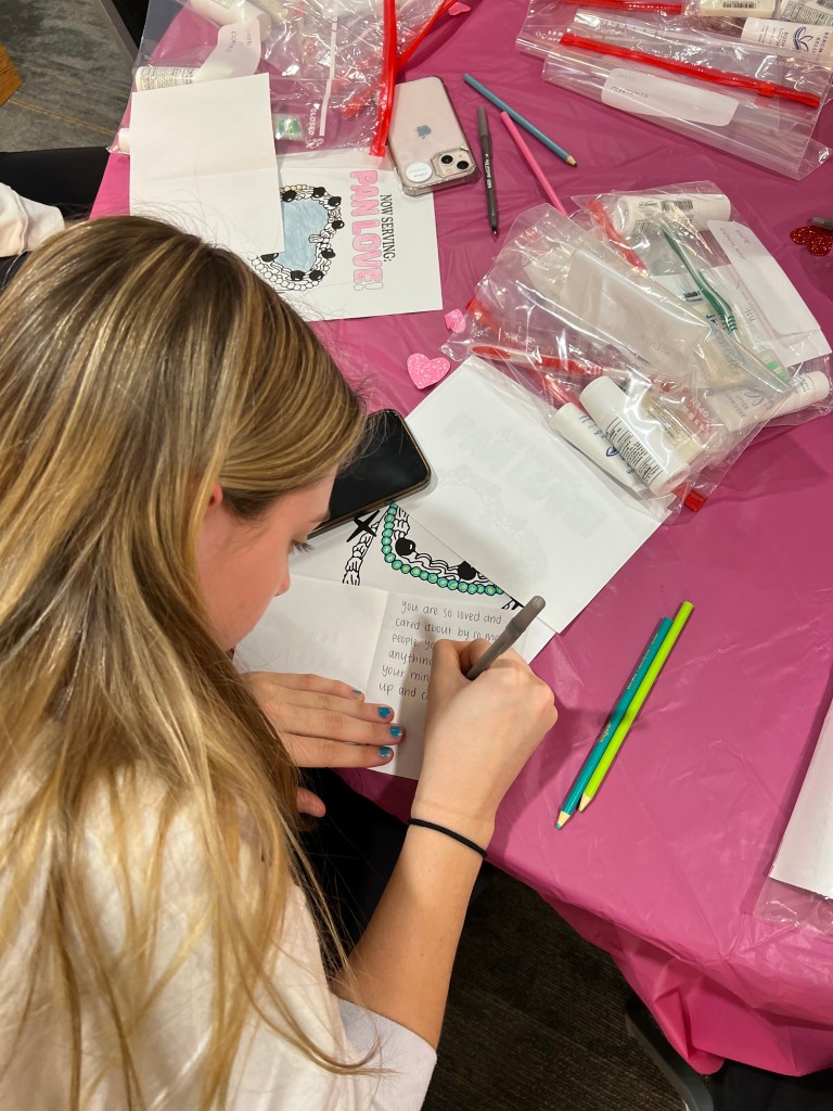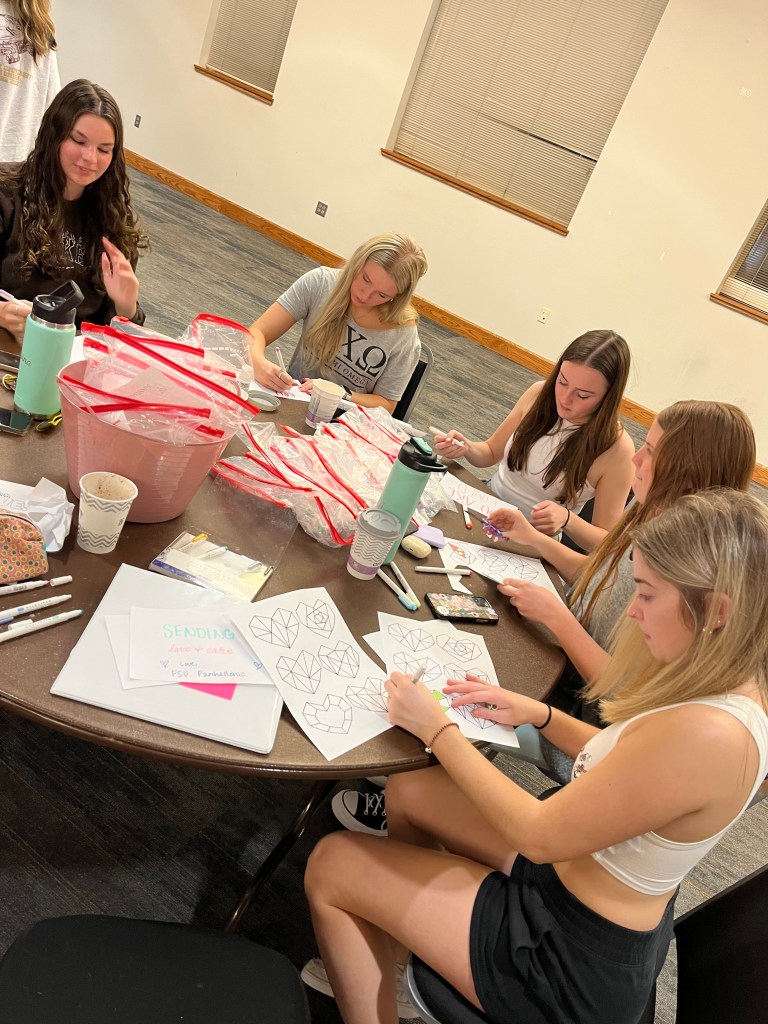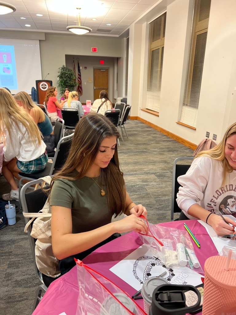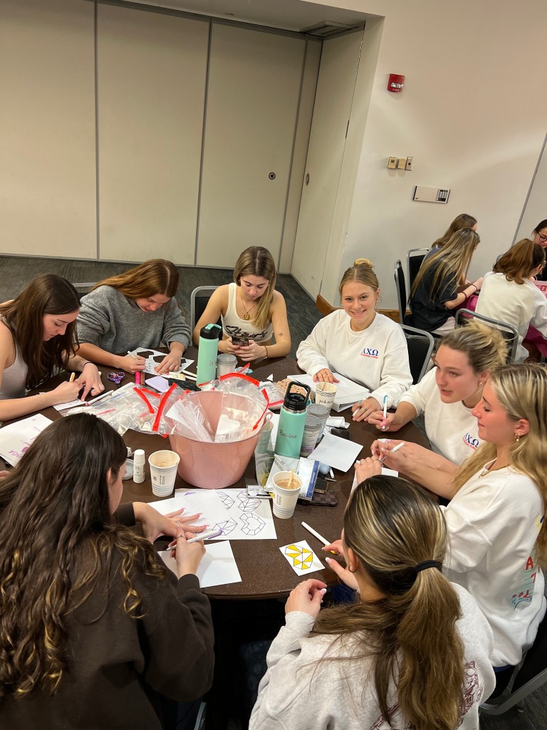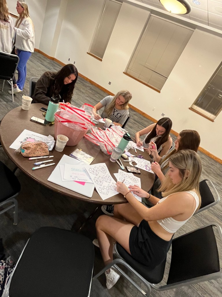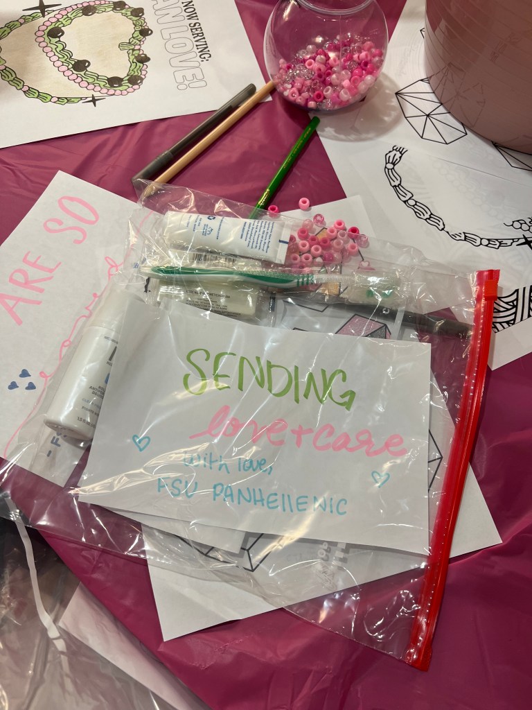 The ladies of Alpha Chi Omega joined women from all Panhellenic chapters for a “Packed with Love” Event where women made care packages with toiletries for the Refuge House along with letters. We also participated in bracelet making and enjoyed hot coca and the sisterhood of the community!