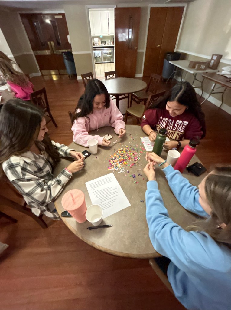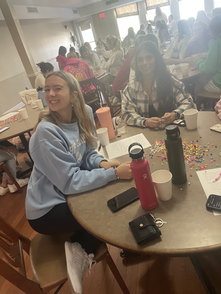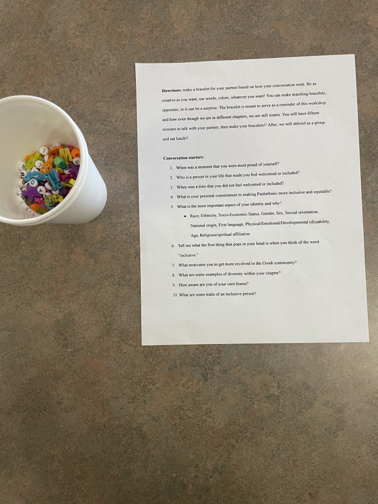 VP of Diversity, Equity, and Inclusion, Anna partnered with leadership in Phi Mu to host a joint event. Ladies partnered with someone for the other chapter, joined in conversations, and followed prompts to build bracelets. The ladies also enjoyed lunch, followed by conversation debrief as a group.