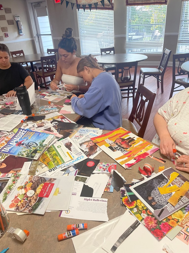 Some of the world’s most influential thought leaders – agree. It is possible to turn your dreams into reality through manifesting and hard work! The sisters worked to be intentional with their goals through the CHAW guided workshop. Members looked at short and longterm goals, and visualized both the goal and the action steps that would make the abstract goal/idea come to fruition. The vision boards were poster-sized visuals, contain all kinds of images and text that represent something members are trying to accomplish.