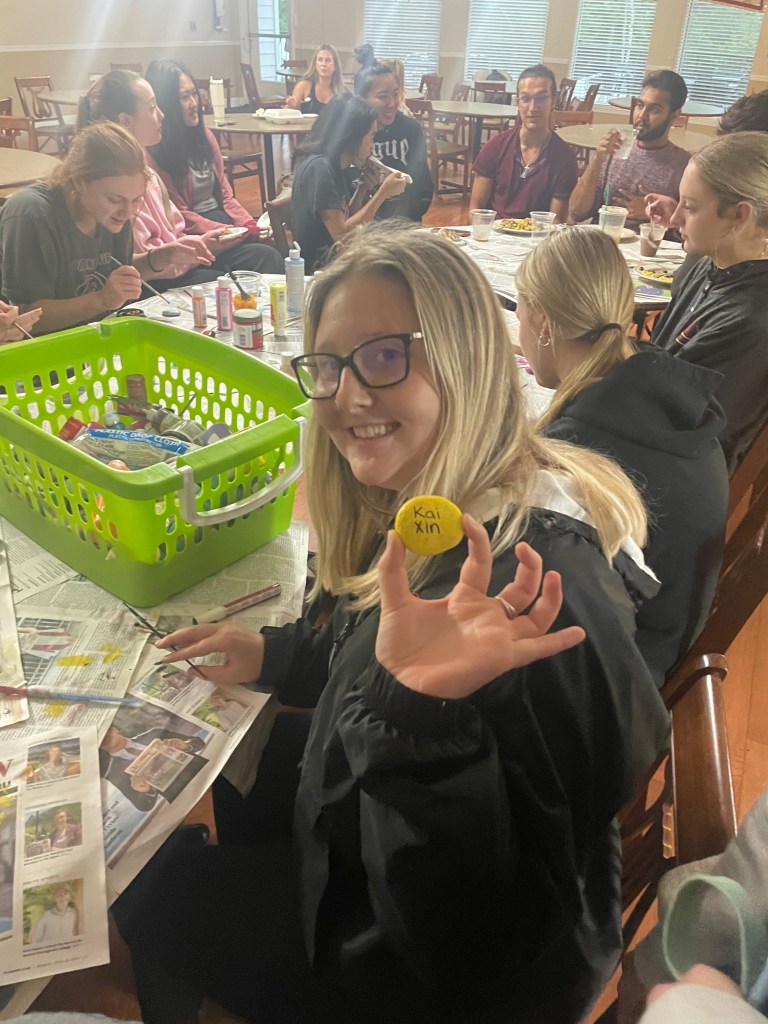This past week the ladies of Alpha Chi Omega partnered with members of the Asian American Student Union (AASU) for a mental health – event to destress a bit before finals. Those in attendance were able to use their creative side to paint rocks that they can then keep for themselves or hide around campus. While at the event members of the AASU taught sisters how to say Love in other languages. It was a ton of fun, and even some of our House Gentleman (servers) joined in after their shift. A big thank you to the leadership of AASU and our VP Diversity and Inclusion chair Anna for organizing!