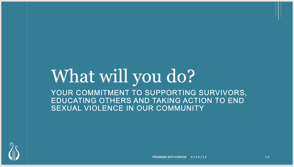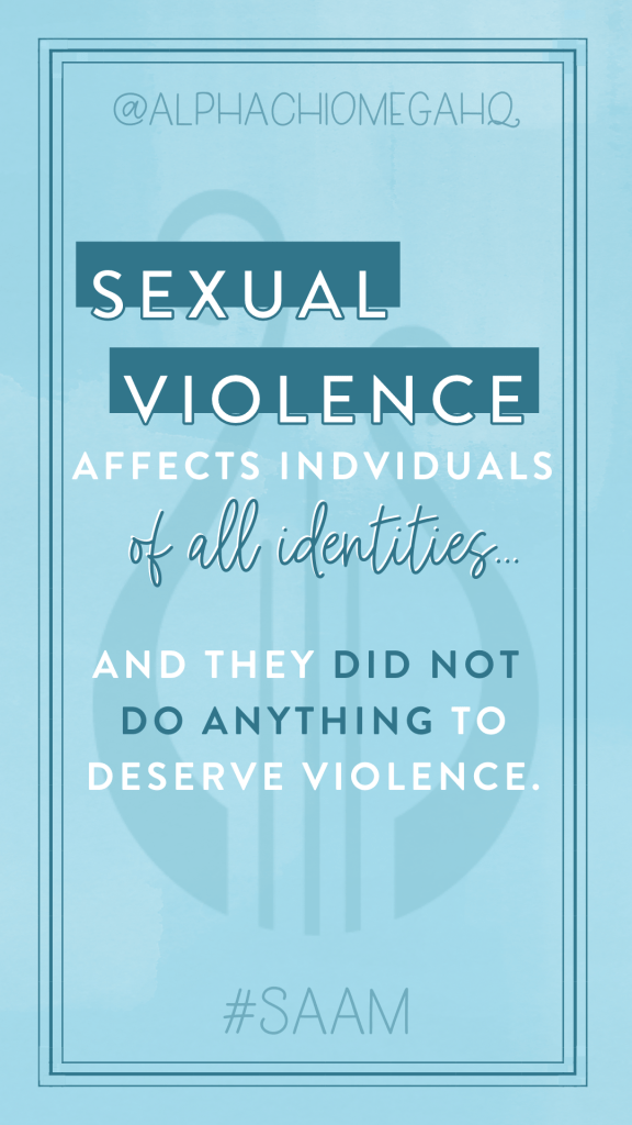 To help educate the chapter members about SAAM, Alpha Chi Omega created a 30-minute program, The History of Sexual Assault Awareness Month, we facilitated this during the chapter to educate members on the history of Sexual Assault Awareness Month and the prevalence of sexual violence in the United State