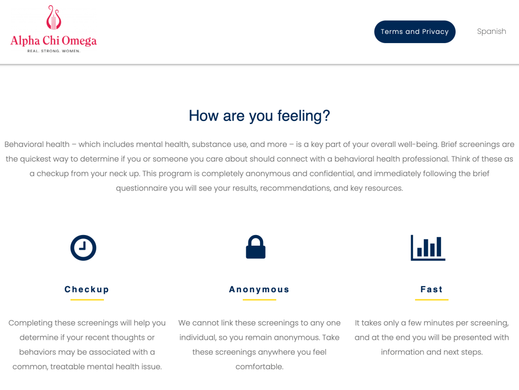 Through Alpha Chi Omega’s new partnership with MindWise Innovations, members can access 13 different anonymous and confidential mental health screenings.
