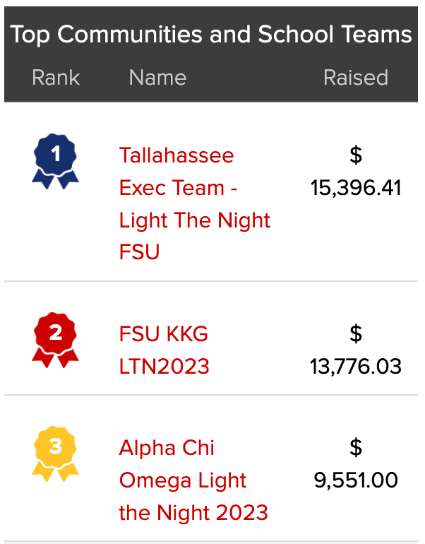 The ladies of Alpha Chi Omega joined with the gentleman of Alpha Delt to raise awareness and funding for The Leukemia & Lymphoma Society’s Light The Night. The organizations gathered with the FSU community to celebrate, honor, and remember those touched by blood cancers. The teams and sponsors joined together to bring light to the darkness of cancer. The funds raised by the community fund lifesaving research, advocacy and support for blood cancer patients and their families.