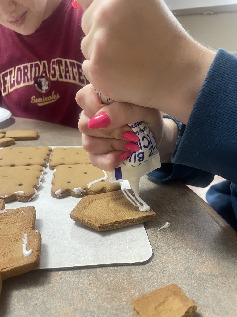 Incoming VP Facility, Laney and outgoing KROM chair Kiersten Tab joined forces to hosted an in-house sister white elephant and sister gingerbread house and cookie decorating party followed by Holiday movie night! It was a great way to enjoy time with our sisters while celebrating the season before our last week of classes and exams