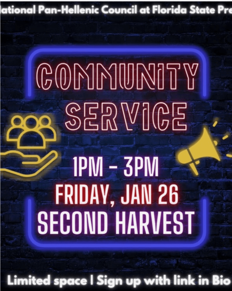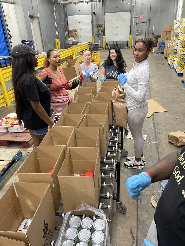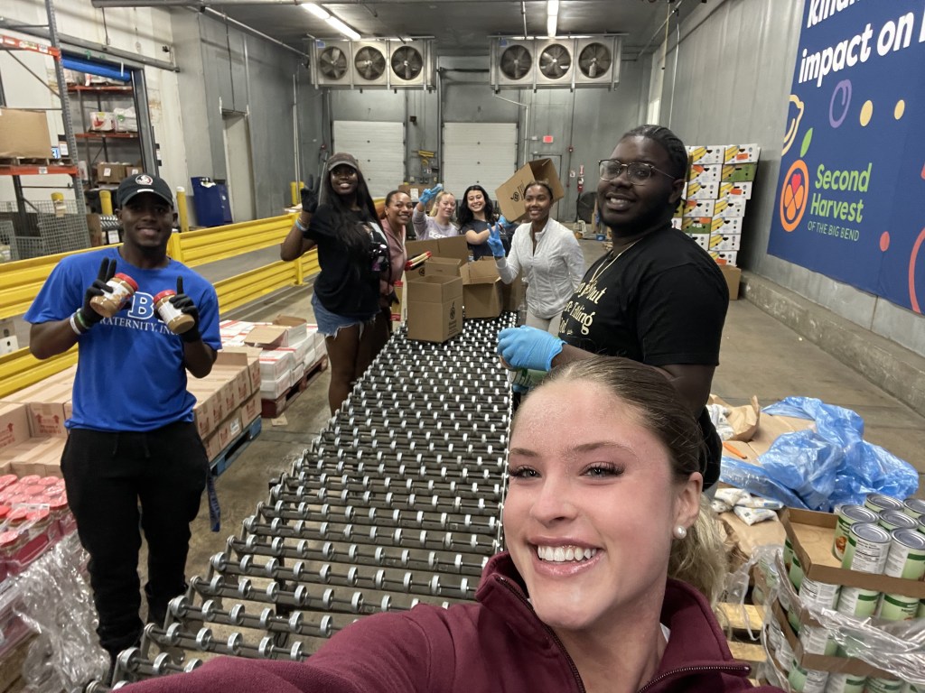 VP Philanthropy Claire worked to organize Alpha Chi’s participation in a community volunteering event with Second Harvest of the Big Bend. Sisters Claire, Ravina, Avery and Marguerite. The volunteers worked to sort food donations from Publix into categories and boxed 500 meals for distribution to hurricane relief in Perry.