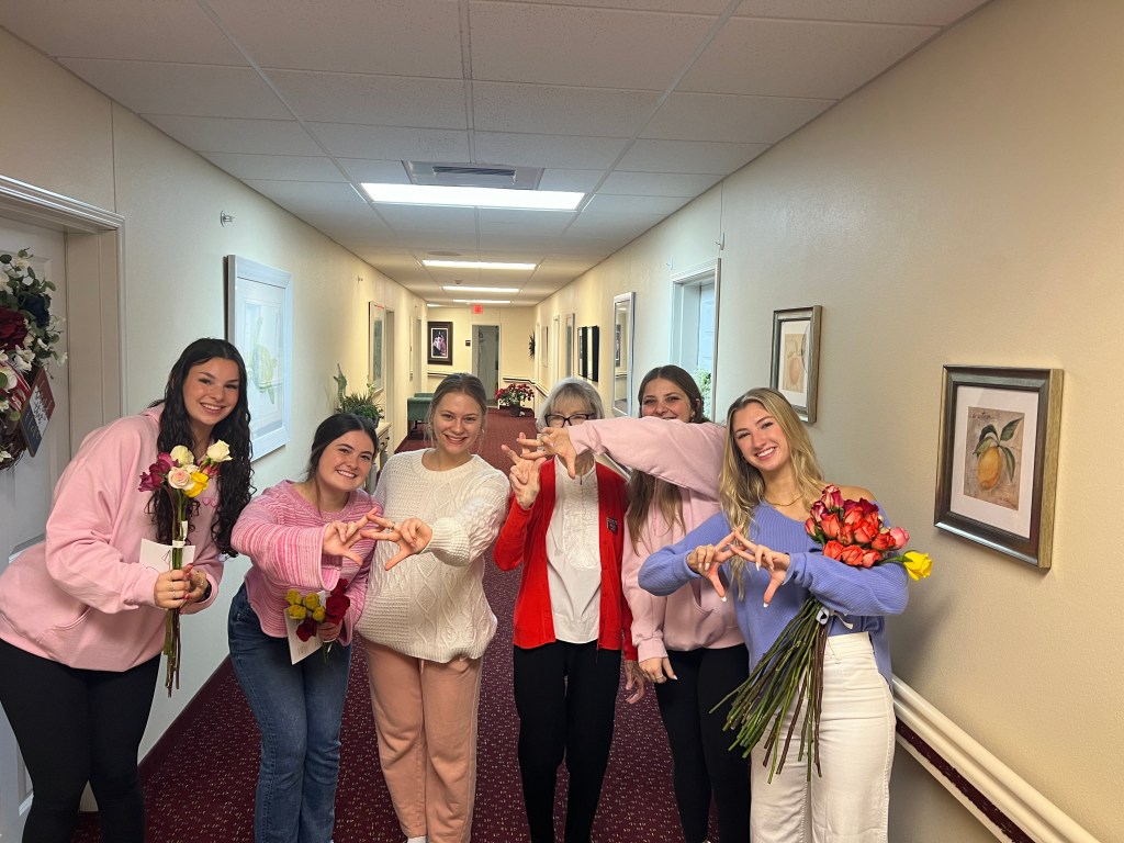 For the 11th year, Wish of a Lifetime from AARP will deliver cards and roses to hundreds of thousands of older adults on Feb. 14 through its Cupid Crew network of volunteers. The annual tradition aims to help tackle the nation’s loneliness epidemic, which threatens the health and well-being of millions of people in the U.S. Alpha Chi Omega joined the “cupid crew” for a third & fourth time this academic year to prepare and execute this event in Tallahassee. You can read about the first two times sisters participated here – joining members of Sigma Phi Epsilon to prepare cards.
