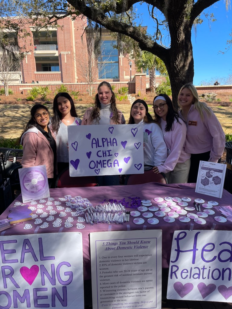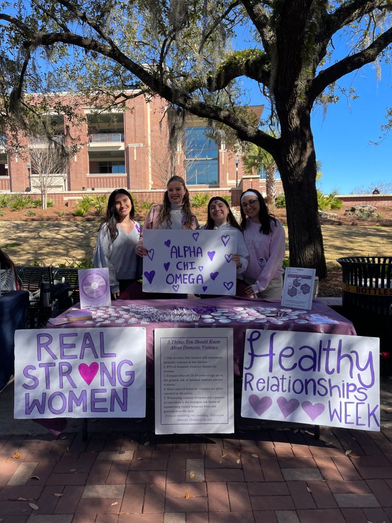 Healthy Relationships Week is celebrated in the month of February during the week of Valentines Day. As part of our philanthropic mission, Alpha Chi Omega’s Healthy Relationships Week serves as a reminder to foster the development of healthy relationships and, by so doing, prevent domestic violence and sexual assault. The week’s programming is open to all who wish to create real change in their community – both members and nonmembers! One of the chapters events this year was tabling during Market Wednesday at Florida State. The chapter utilized the opportunity to engage with students, faculty and staff to explore how healthy connections create a sense of belonging, support and understanding, which help to strengthen relationships around us.
