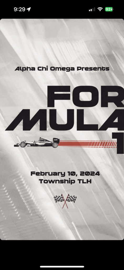 This past week the chapter had an F1-themed Date Function at Township. VP of Risk Management and Date Function Chair Ellie thought of every detail – from theme to decor, mini remote control race cars to backdrops. We had a great time – already counting down to the next function!!