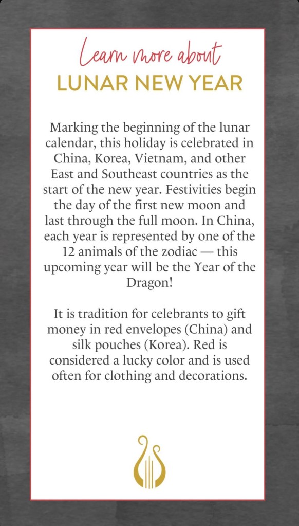 In the Chinese zodiac, 2024 is the year of the dragon. Different regions across Asia celebrate Lunar New year in many ways and may follow a different zodiac. We also acknowledge that many Asian Americans and Pacific Islanders do not observe the Chinese/lunar zodiac.