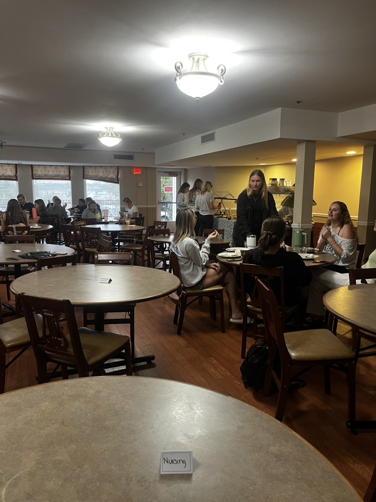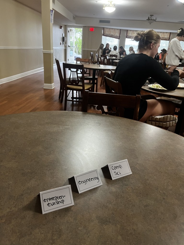 VP of Intellectual Development Julie, worked to host a major dinner. At our major dinner, our sisters had the chance to meet other sisters in the same major as them and chat about classes and opportunities. The labeled tables gave them a chance to walk around and see what different majors our sisters are in, and it was a great hit for new members to meet older sisters.