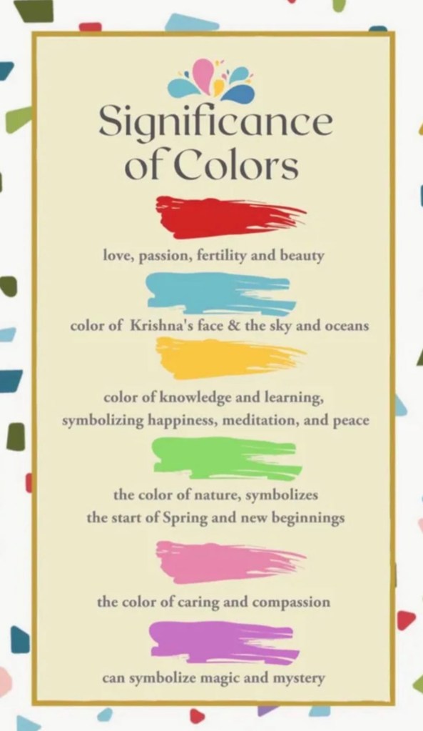 The festival has many purposes; most prominently, it celebrates the beginning of Spring. In 17th century literature, it was identified as a festival that celebrated agriculture, commemorated good spring harvests, and the fertile land. Hindus believe it is a time to enjoying spring’s abundant colours and saying farewell to winter. To many Hindus, Holi festivities mark an occasion to reset and renew ruptured relationships, end conflicts, and rid themselves of accumulated emotional impurities from the past.