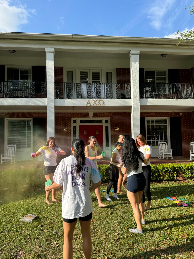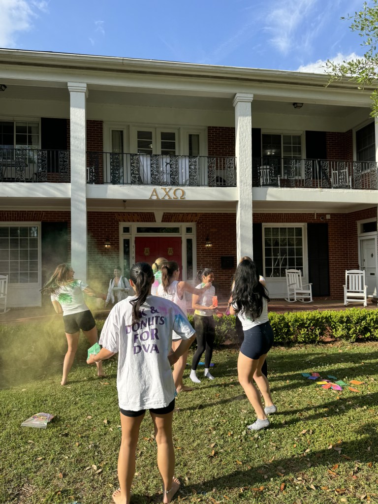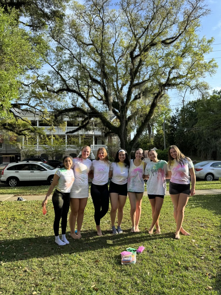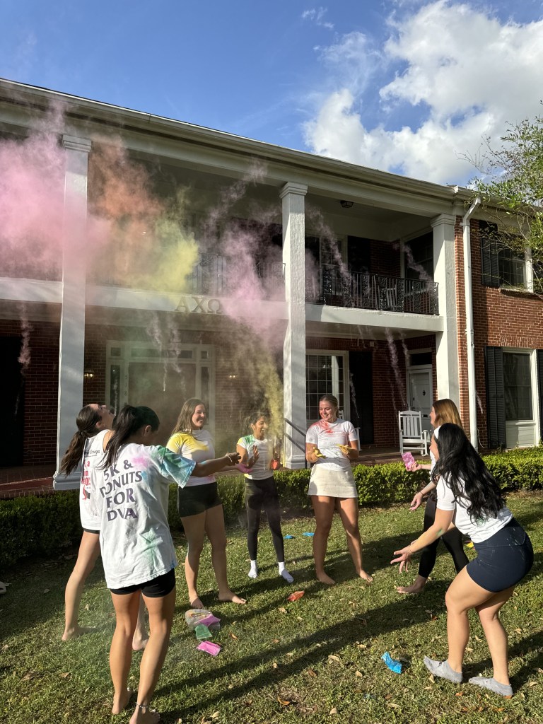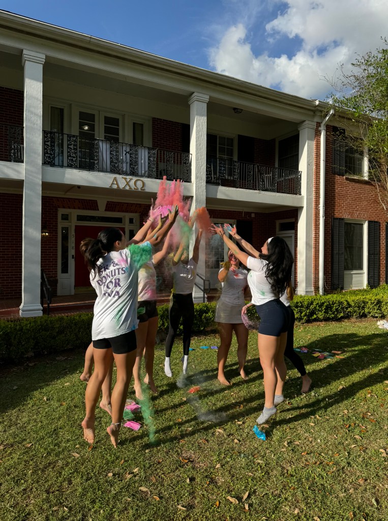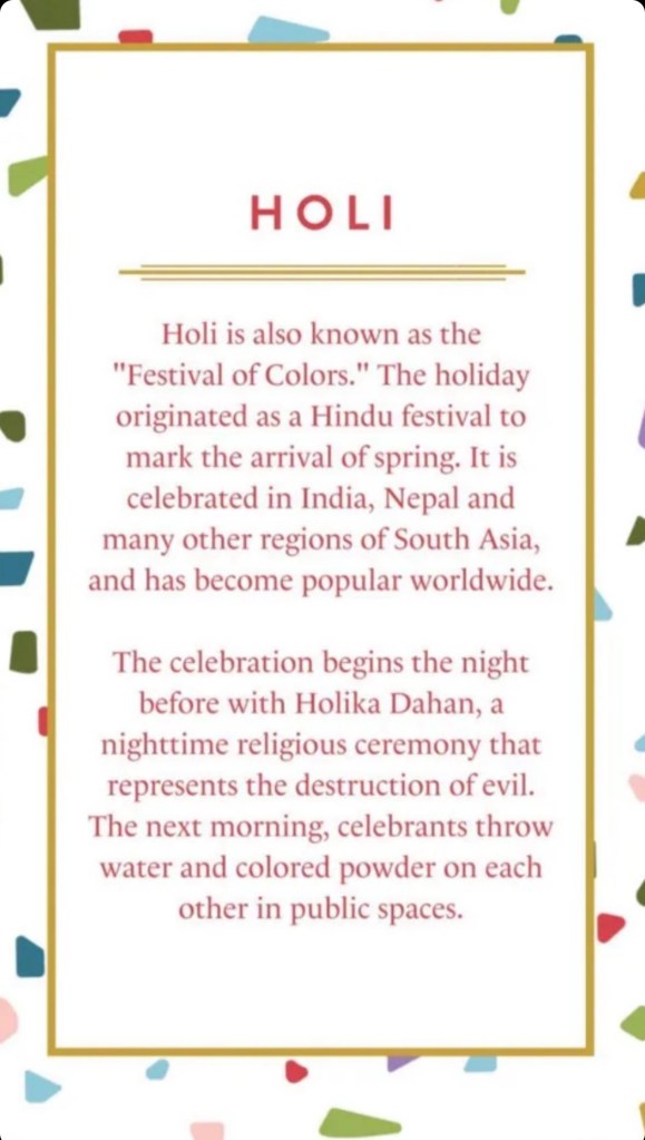 Following the meal, the VP of Diversity, Equity and Inclusion shared information about Holi. The significance of the selected colors (denoted above) and then members had the opportunity to take part in the traditional throwing of powder.