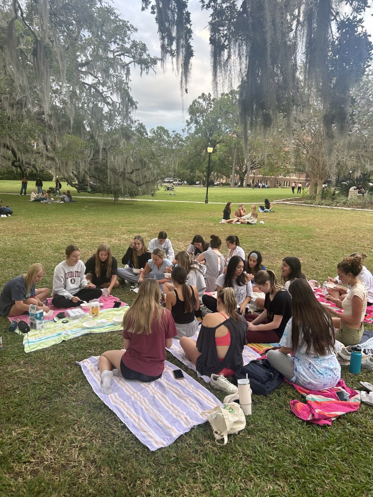 Our VP of Membership Programming Natalie scheduled a bath scrub and burnout event for sisters. The event was a great event to push through mid-semester burnout and practice self-care Engaging in a self-care routine is clinically proven to reduce or eliminate anxiety and depression, reduce stress, increase happiness, and more. It can help us as students adapt to change, build strong relationships, and recover from setbacks.
