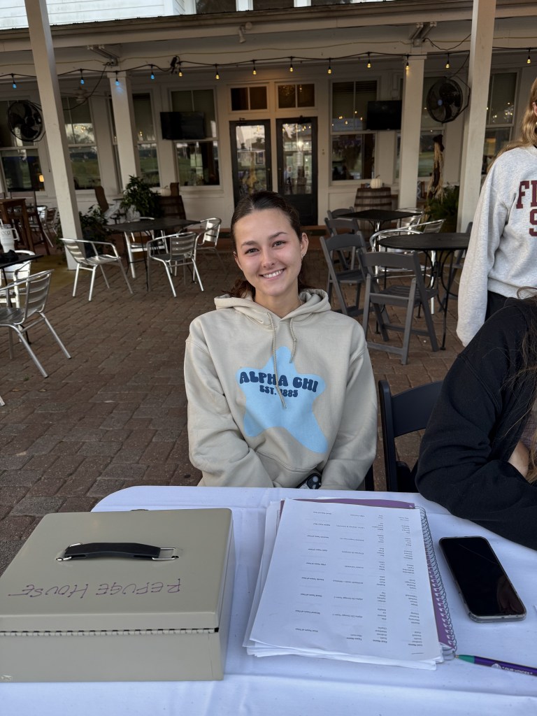 Alpha Chi Omega members created two teams to participate in the annual Refuge House Golf Tournament raising awareness and funding for Domestic Violence Survivors. Members also volunteered to work the check in table, man the hospitality hole, take team photos, and assist with golfer goodie bag creation and distribution .