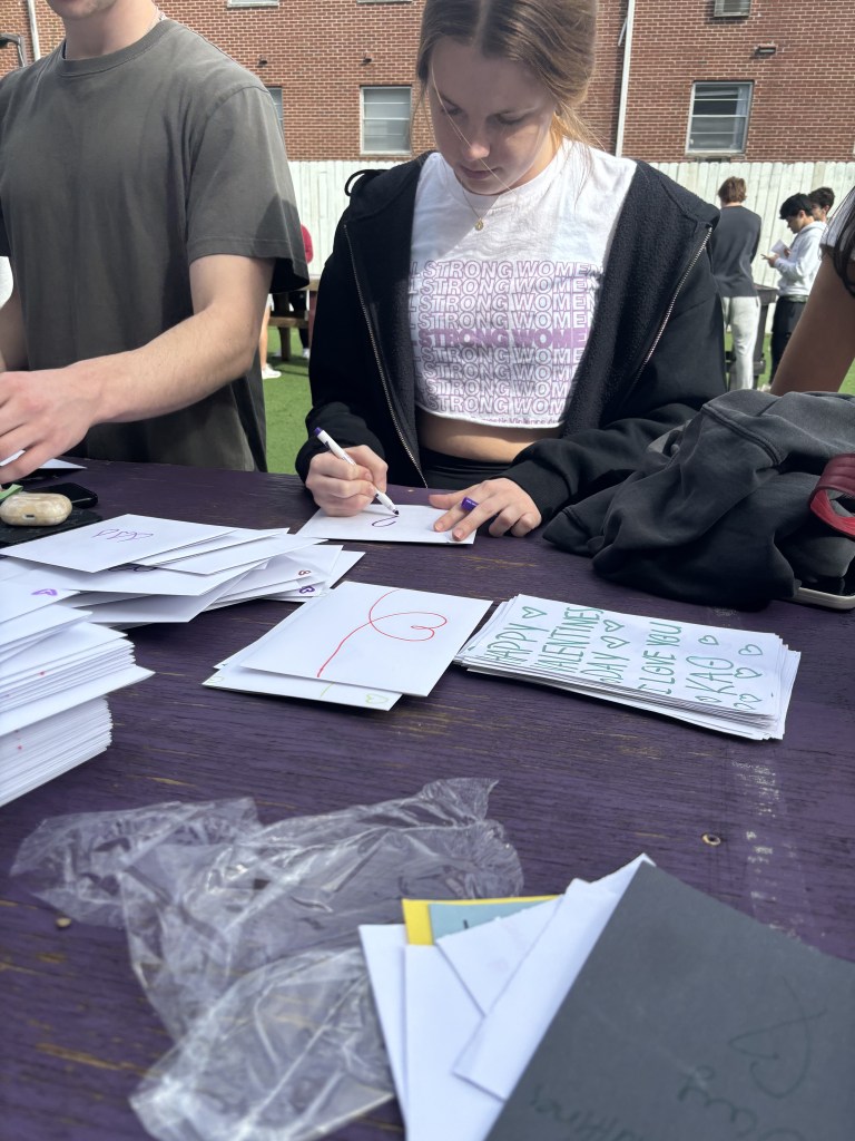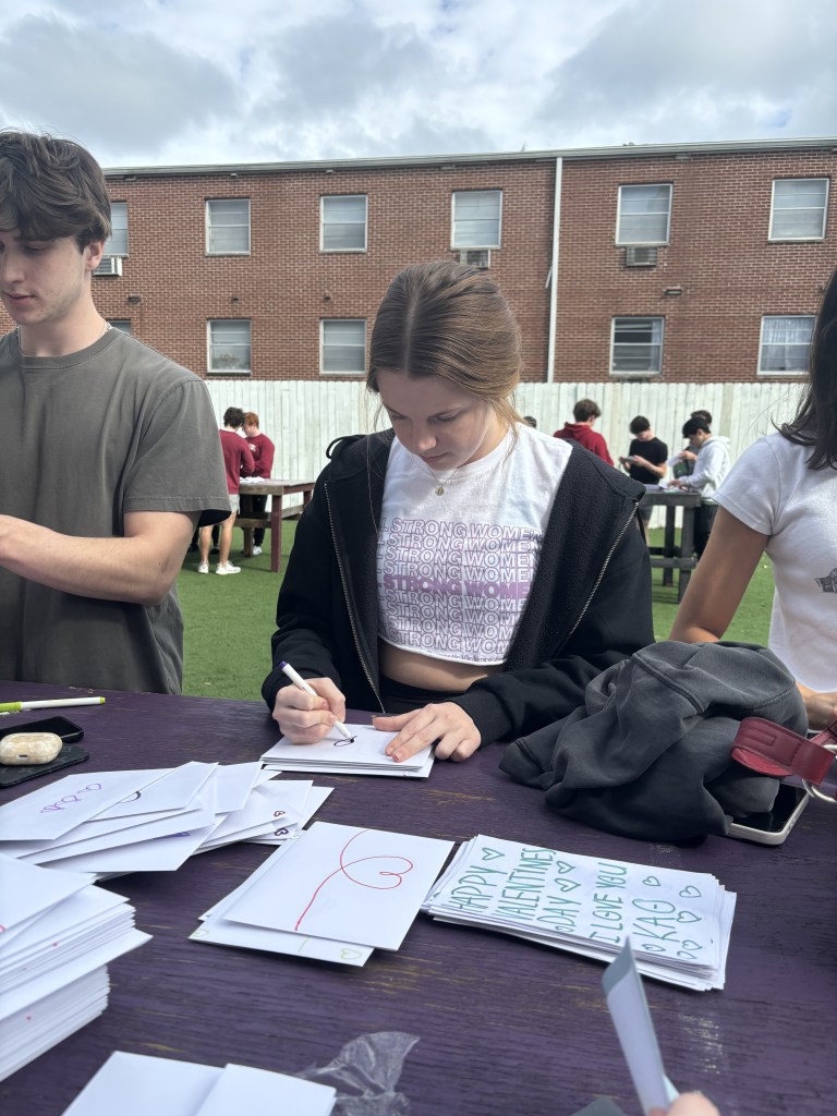 Alpha Chi Omega joined the “cupid crew” for a second time this academic year. Sisters – Mira, Brinlee, Gaby, Emily, McKenna & Lexi spent the afternoon with the brothers of Sigma Alpha Epsilon crafting cards for the elderly living in nursing homes and assisted living facilities.
